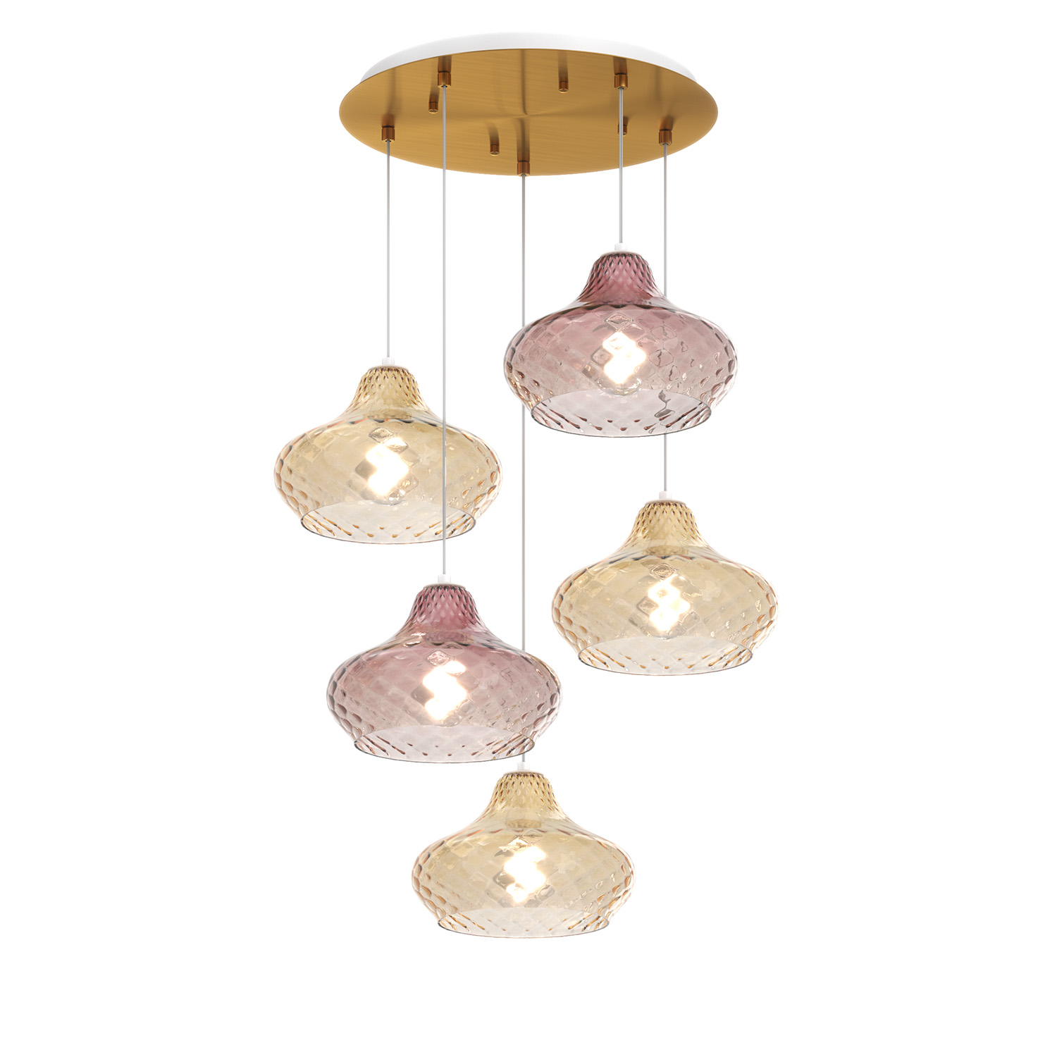 Lampadario Contemporaneo Dress Metallo Ottone Vetro Ambra-Ruggine 5 Luci E27