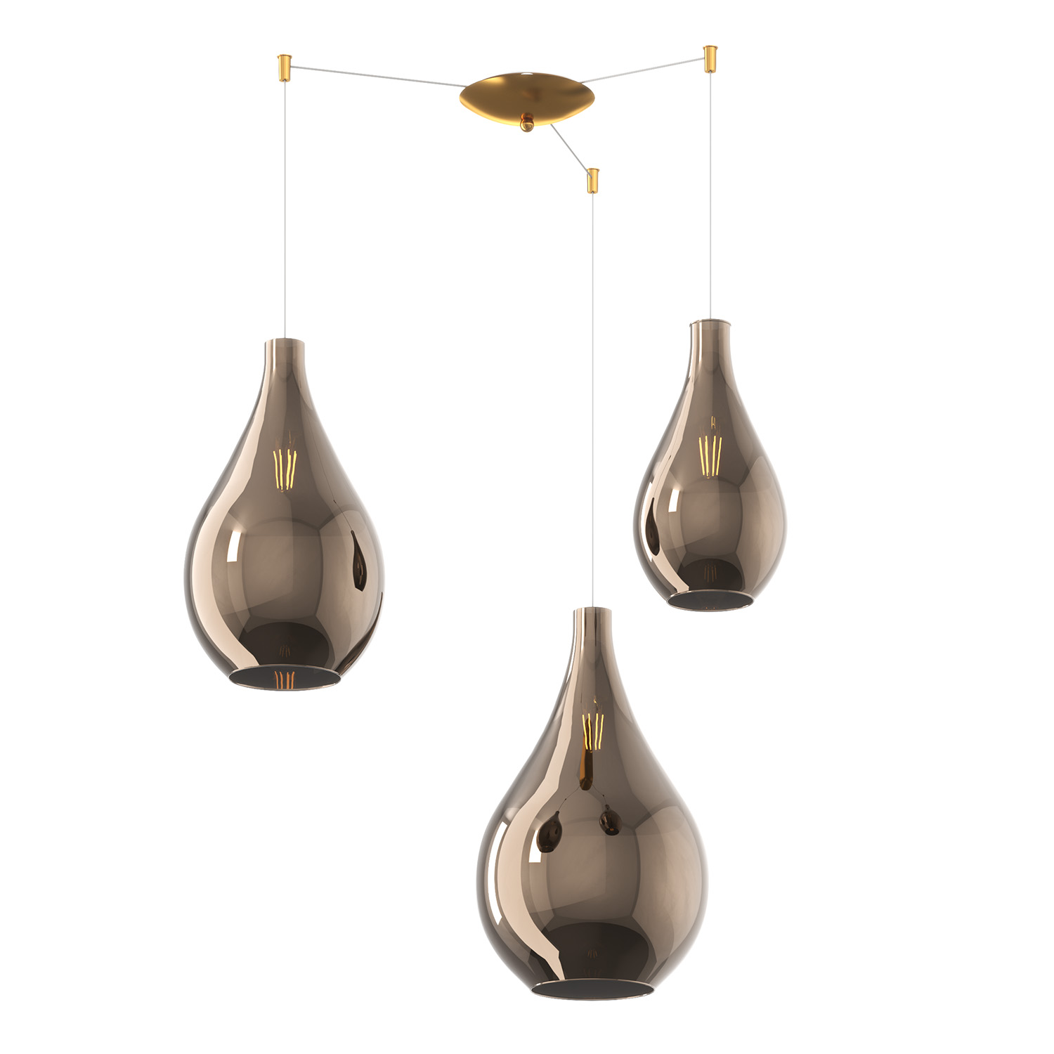 Lampadario Contemporaneo Drop 2.0 Metallo Ottone Vetro Ambra-Bronzo 3 Luci E27