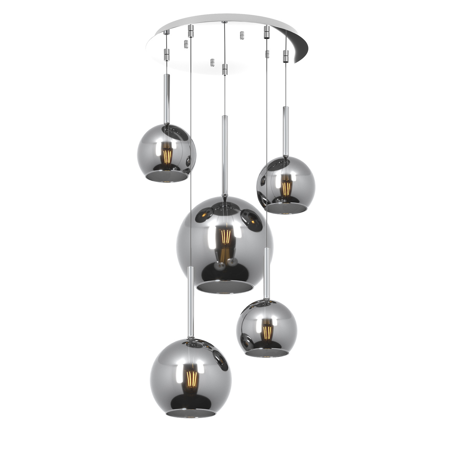Lampadario Contemporaneo Future Metallo Cromo Vetro Mix 5 Luci E27