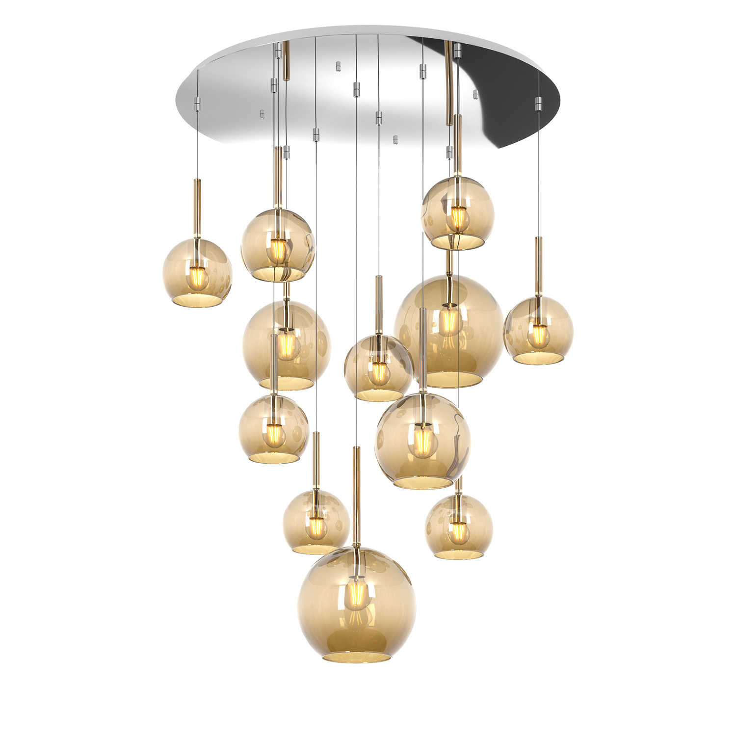 Lampadario Contemporaneo Future Metallo Cromo Vetro Mix Ambra 12 Luci E27