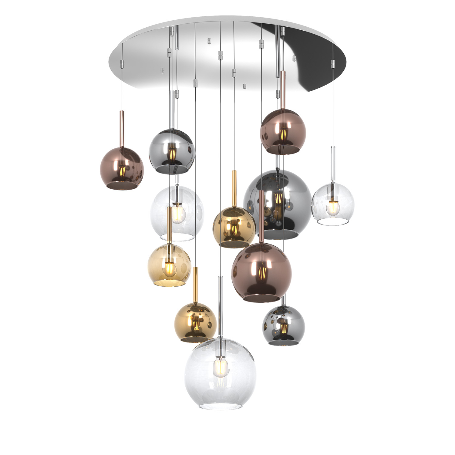Lampadario Contemporaneo Future Metallo Cromo Vetro Mix Multicolor 12 Luci E27