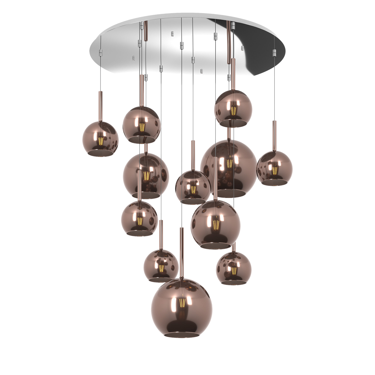 Lampadario Contemporaneo Future Metallo Cromo Vetro Mix Rame 12 Luci E27