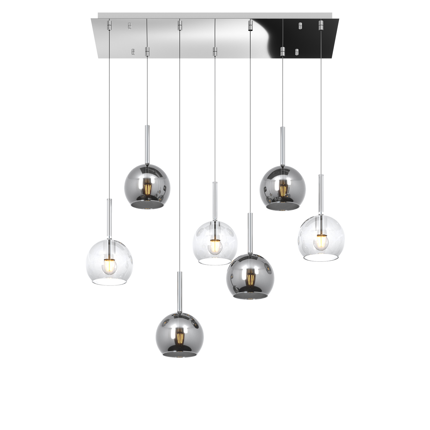 Lampadario Contemporaneo Future Metallo Cromo Vetro Trasp-Cromo 7 Luci E27