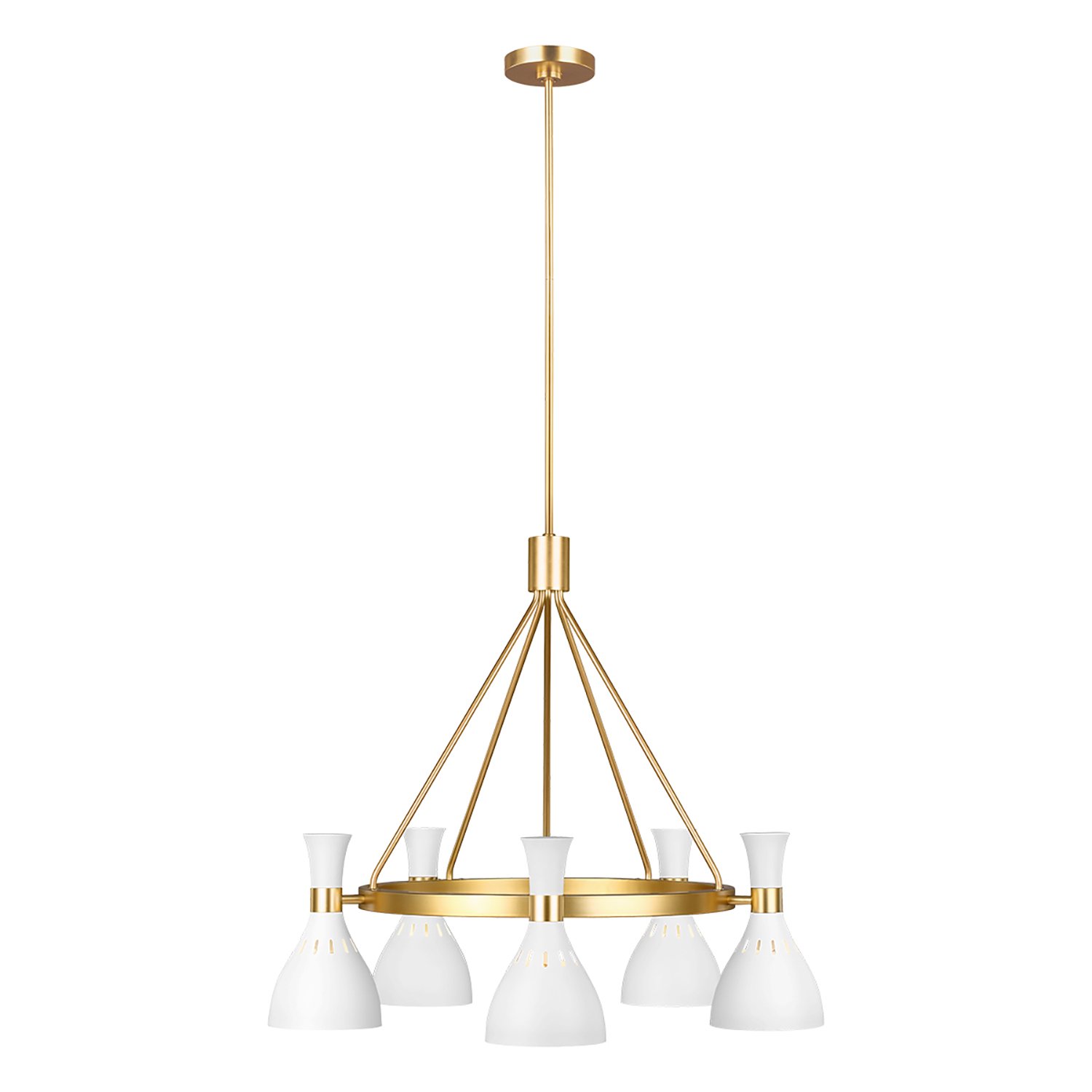 Lampadario Contemporaneo Joan Acciaio Bianco Opaco Ottone Brunito 5 Luci E27