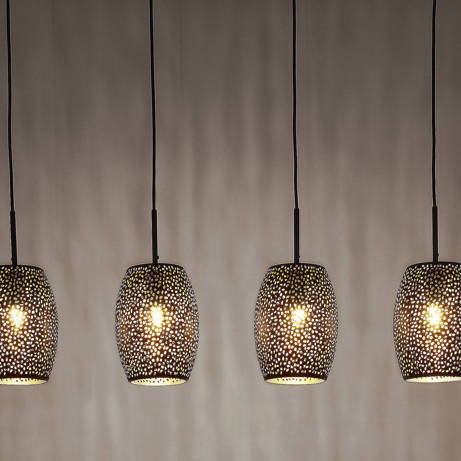 La splendida sospensione a barra da soffitto Laser non solo aggiungerà una nota a qualsiasi stanza. La natura tagliata al laser del paralume farà sì che bellissimi motivi di luce verranno proiettati nella stanza. I paralumi in metallo nero opaco hanno interni dorati che creano un bellissimo bagliore di luce calda in qualunque stanza sia posizionata questa barra luminosa.