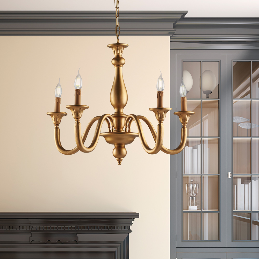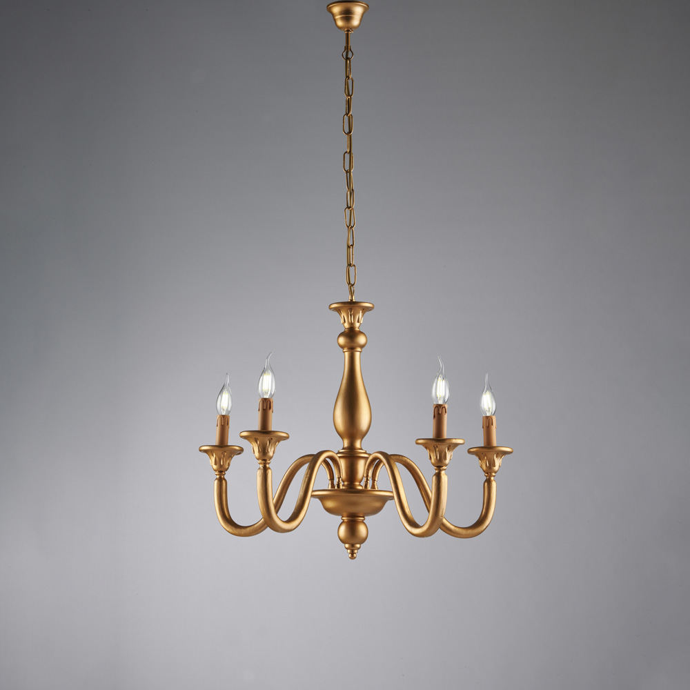 Lampadario Contemporaneo Lucca Legno Oro 5 Luci E14