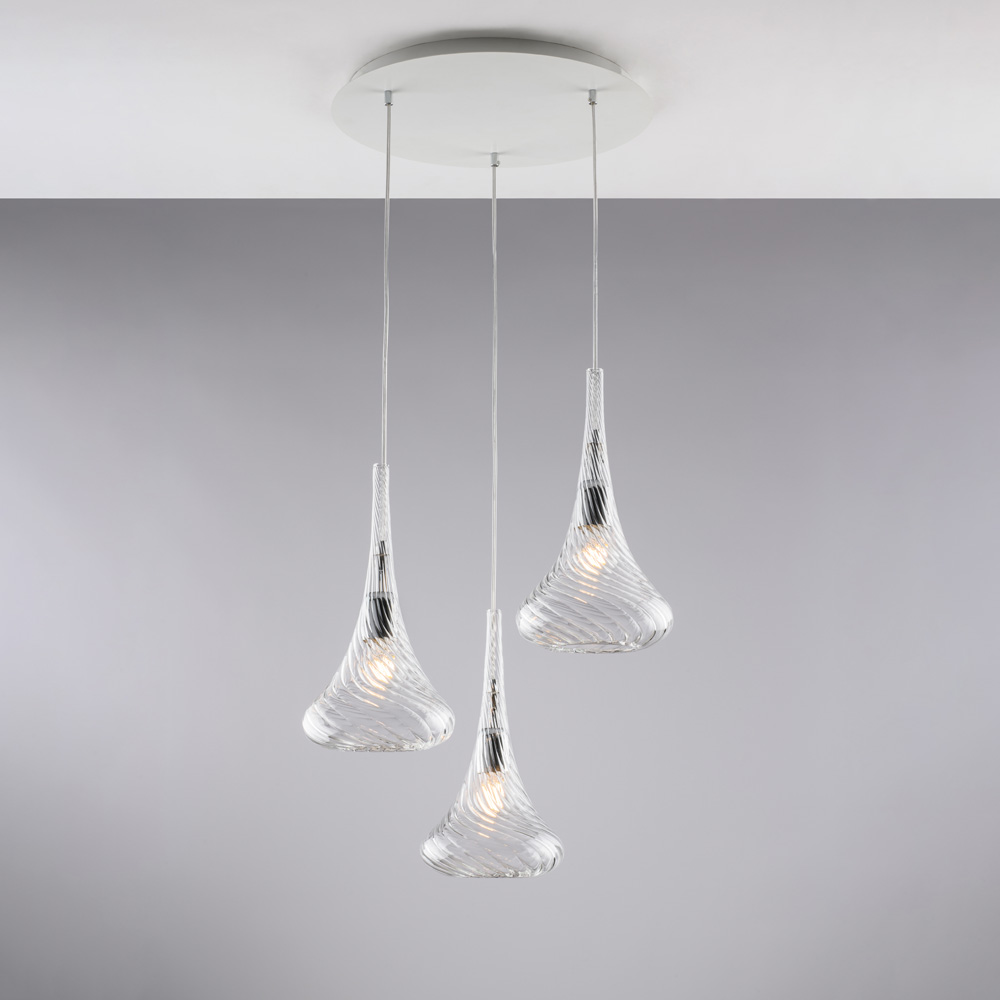 Collezione NemesiLA LAMPADA CHE TI REGALA UNA LUCE UNICA E CRISTALLINALa sospensione Nemesi binario con 3 luci e vetri trasparenti Pyrex, è realizzato in ferro, il c..