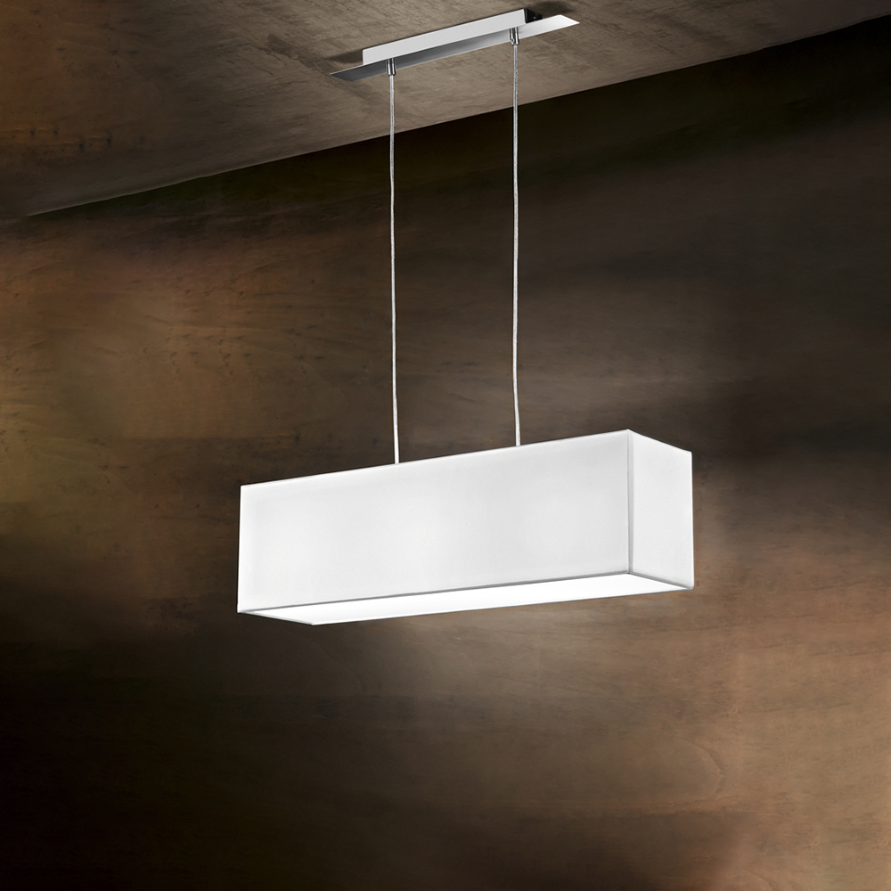 Collezione PARA HOTELELEGANZA 5 STELLESospensione elegante con paralume in PVC e rosone in cromo spazzolato crea un effetto luminoso morbido e piacevole per gli occh..
