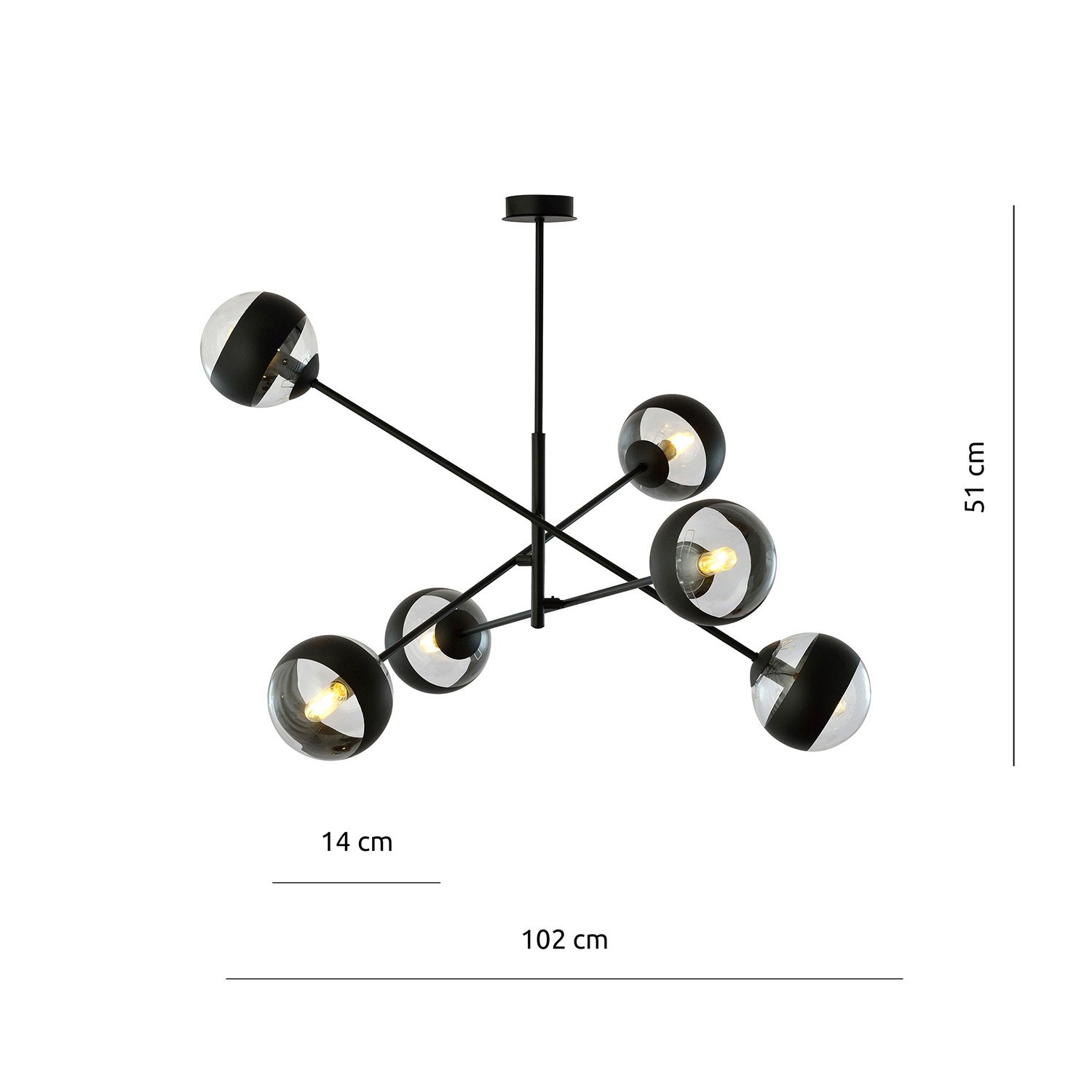 Lampadario 6 Luci Yama In Acciao Nero Con Bracci Regolabili E Vetro Fumè