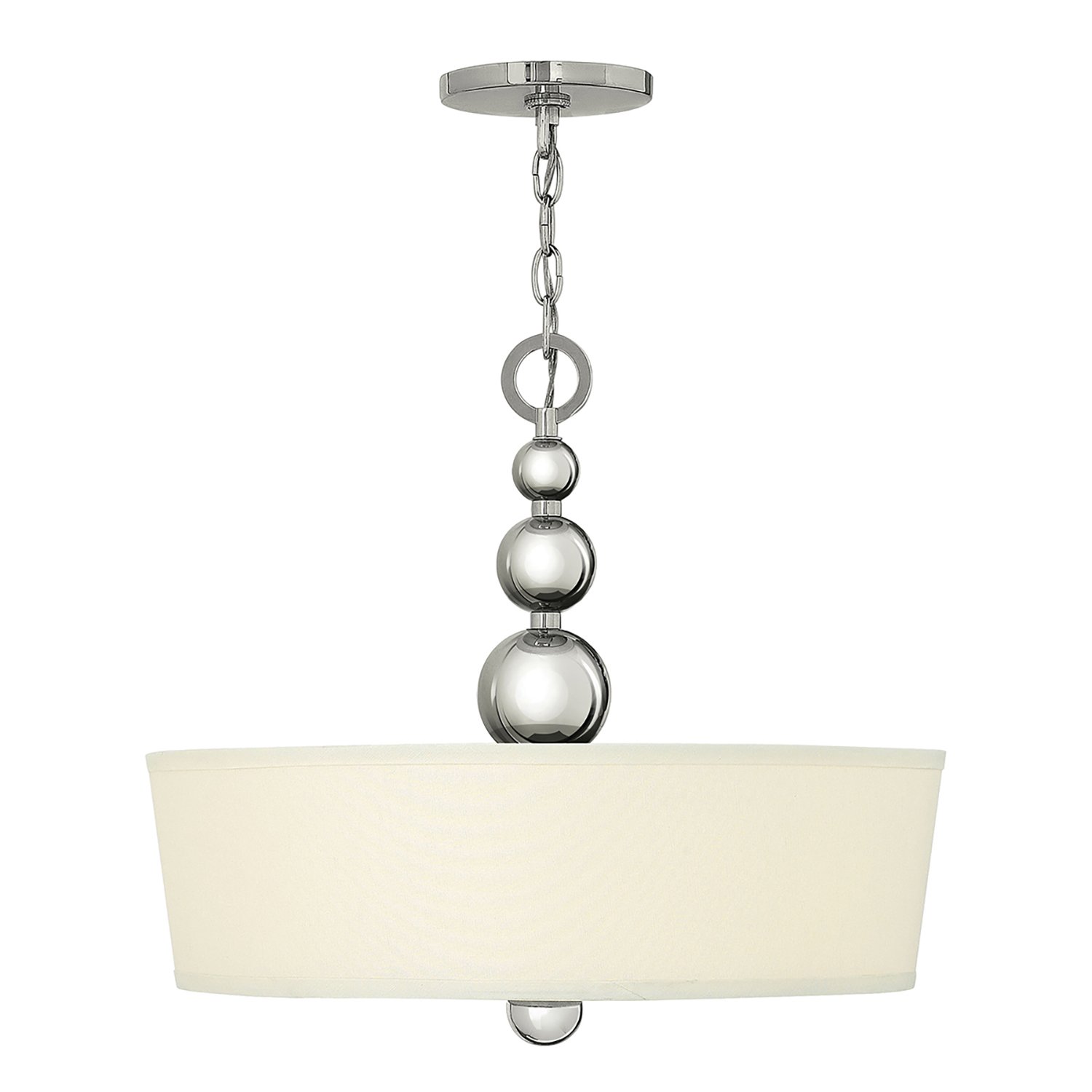 Lampada a sospensione a 3 luci - Nichel Lucido. La sorprendente silhouette in stile metà secolo di Zelda è caratterizzata da sfere metalliche rifinite in nichel lucido, che aumentano di dimensioni man mano che scendono dall'anello superiore, creando un'elegante colonna centrale senza soluzione di continuità. Gli eleganti bracci rettangolari ad arco sostengono i paralumi affusolati in vetro acidato, appoggiati su una coppe a emisfero, che ne aumentano il fascino vintage.