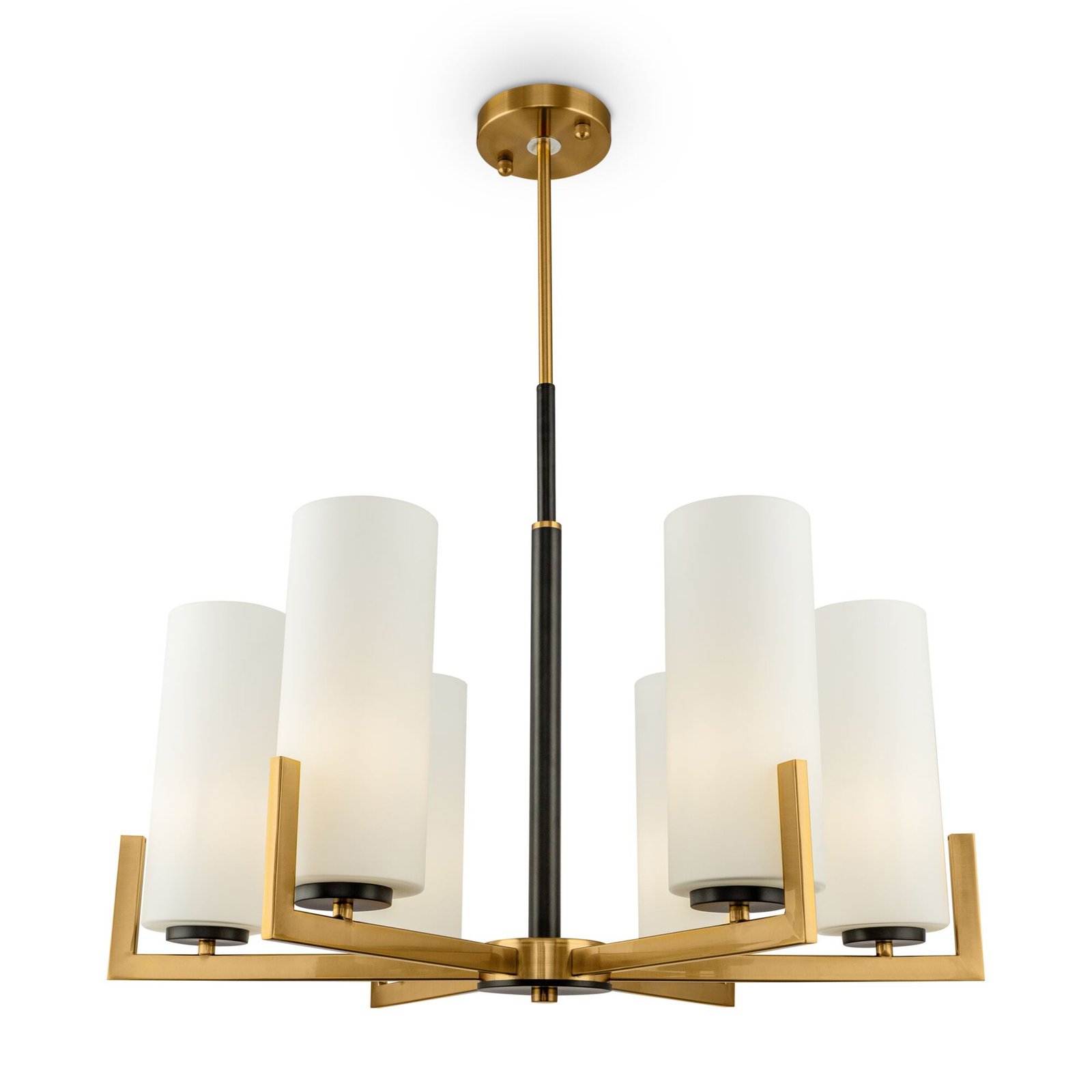 Il lampadario contemporaneo serie Fortano è un elegante lampadario a 6 luci, con una struttura in metallo di colore ottone e diffusori in vetro bianchi.. La particolarità di questo lampadario risiede nella scelta di alcuni elementi tinti di nero a contrasto, che donano un tocco di originalità e contemporaneità. I diffusori cilindrici e le luci rettangolari conferiscono al lampadario un design moderno e pulito, perfetto per arricchire qualsiasi ambiente con una luce diffusa e piacevole. Grazie alla sua eleganza e alla sua versatilità, è ideale per illuminare saloni, soggiorni, sale da pranzo e altre aree comuni, sia in contesti residenziali che commerciali. La struttura in metallo è resistente e duratura, mentre i diffusori in vetro bianchi diffondono una luce uniforme e gradevole, adatta a creare un'atmosfera accogliente e rilassante. Inoltre, il lampadario Fortano è facile da installare e da utilizzare, e può essere regolato in altezza per adattarsi alle diverse esigenze di illuminazione.