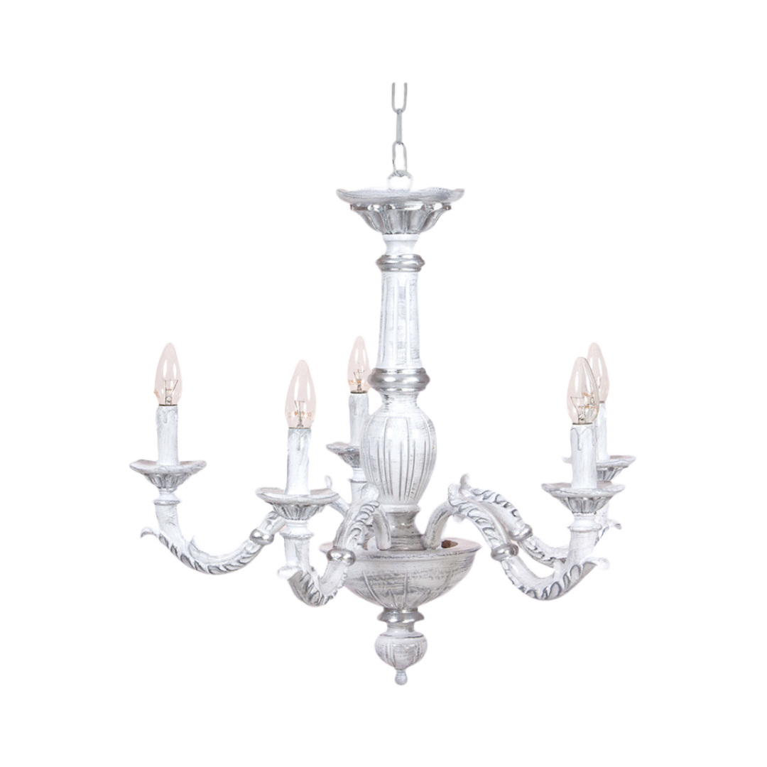 Lampadario In Legno Classico Bianco Argento Grigio Sfumato 6 Luci Sternidi