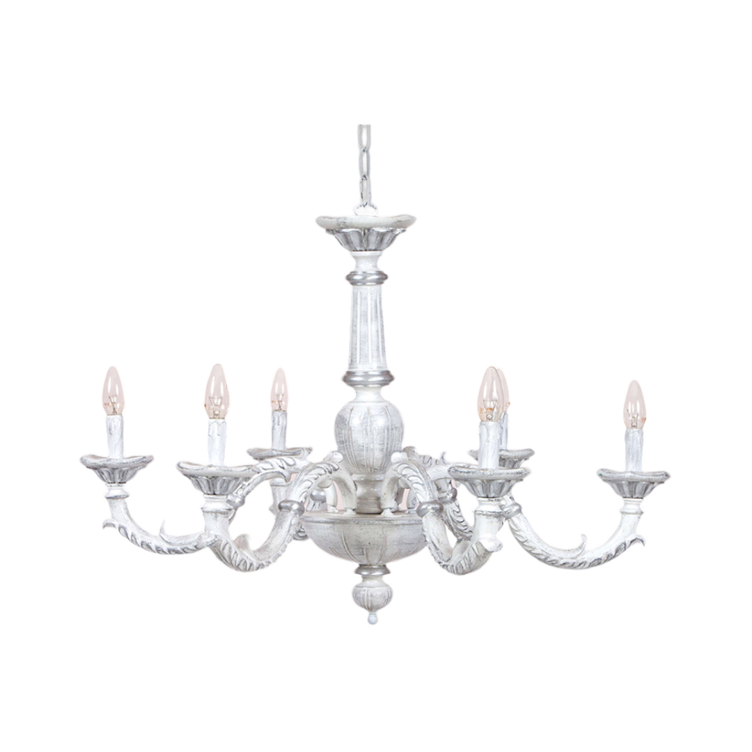 Lampadario In Legno Classico Bianco Argento Grigio Sfumato 6 Luci Sternidi