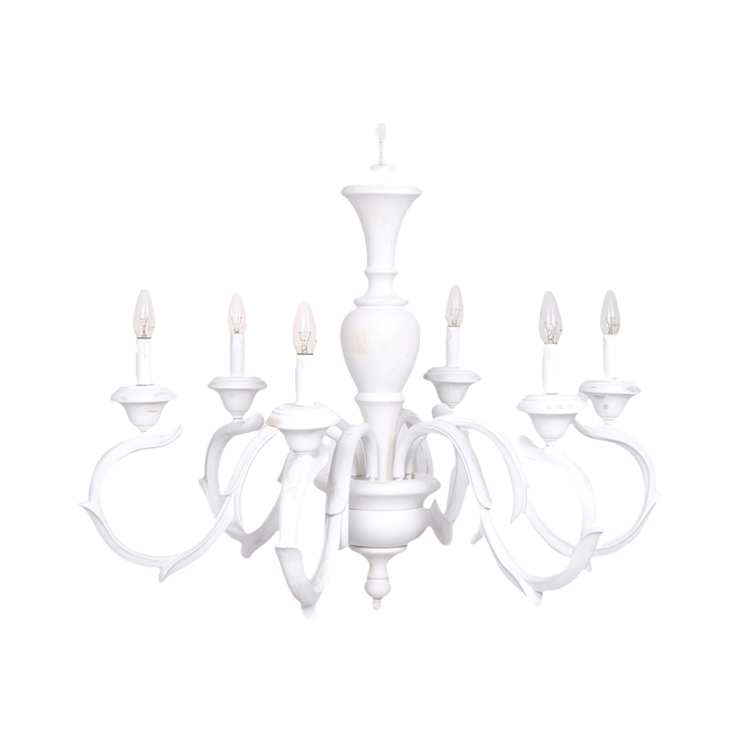 Lampadario In Legno Classico Bianco Sciupato 5 Luci Folaga