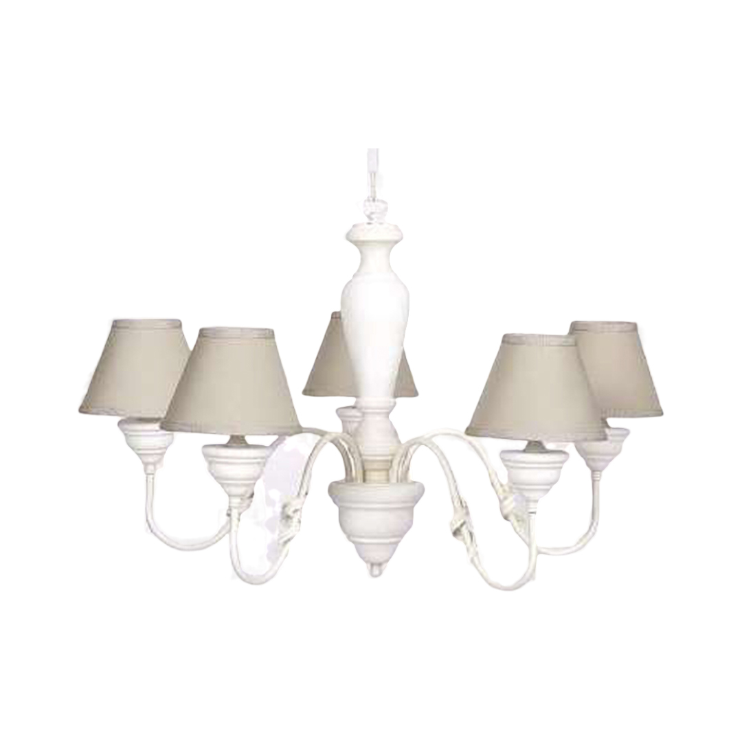 Lampadario In Legno Classico Crema Sbiancato Con Paralume 6 Luci Smergo