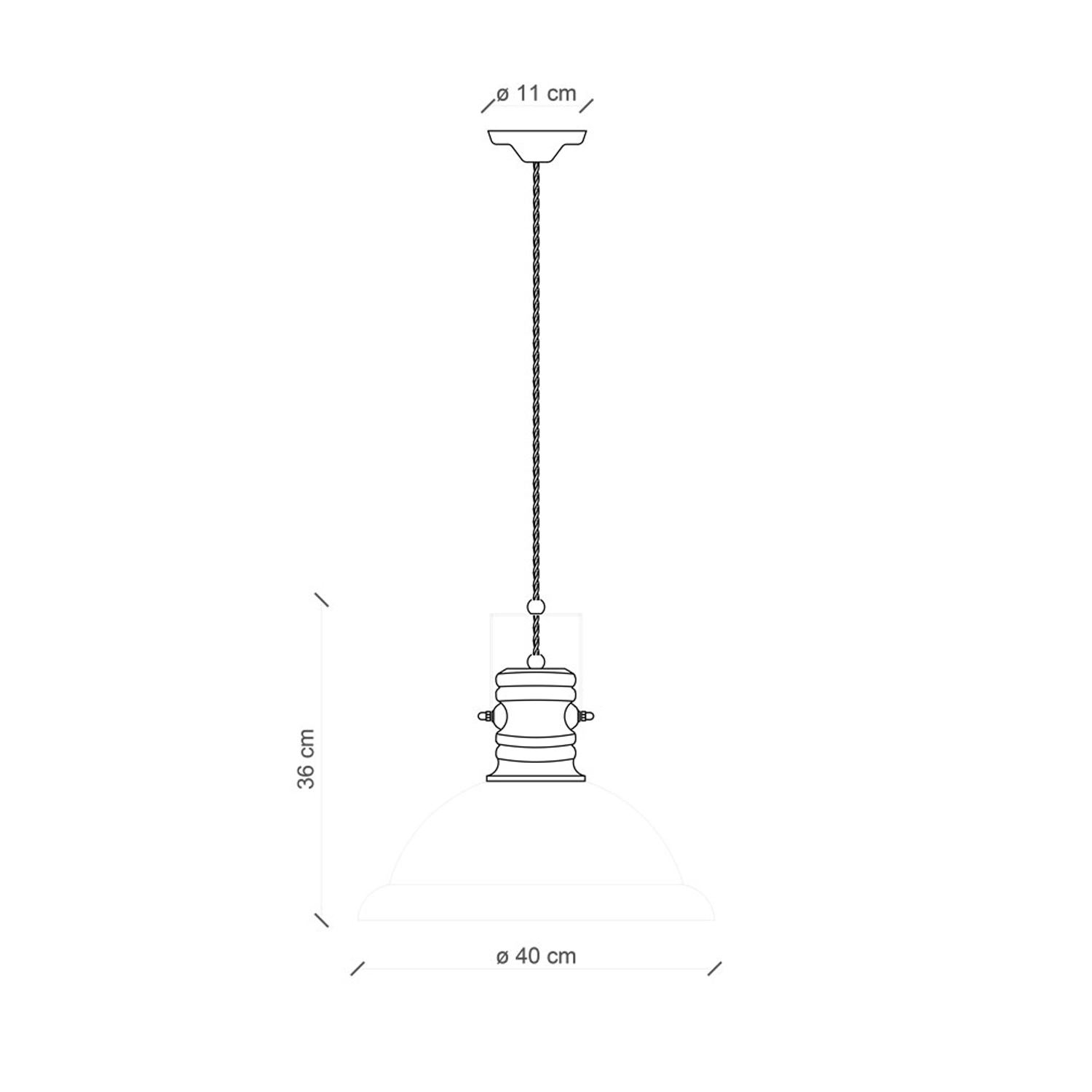 Sospensione 1 Luce diam.40 cm in ceramica con finitura vintage azzurro scrupolosamente lavorata a mano da artigiani specializzati.. Questa lampada a sospensione ricorda quei grossi fari utilizzati per l'illuminazione delle fabbriche, a rimarcare lo stile industriale e minimalista che punta tutto sui colori accesi, le superfici lucide ed i segni del tempo che passa. Tutto ciò la rende un complemento d'arredo dallo stile unico ed intramontabile. Questo articolo è realizzato interamente a mano ed è disponibile anche in altre finiture, come da foto campione. Per richiedere una composizione diversa è possibile indicarlo nell'apposito campo NOTE presente in conclusione di ordine indicando il codice della finitura oppure contattarci dopo aver effettuato l'ordine. Essendo un prodotto 100% artigianale, stai acquistando un prodotto unico e per tanto può differire leggermente dalla foto.