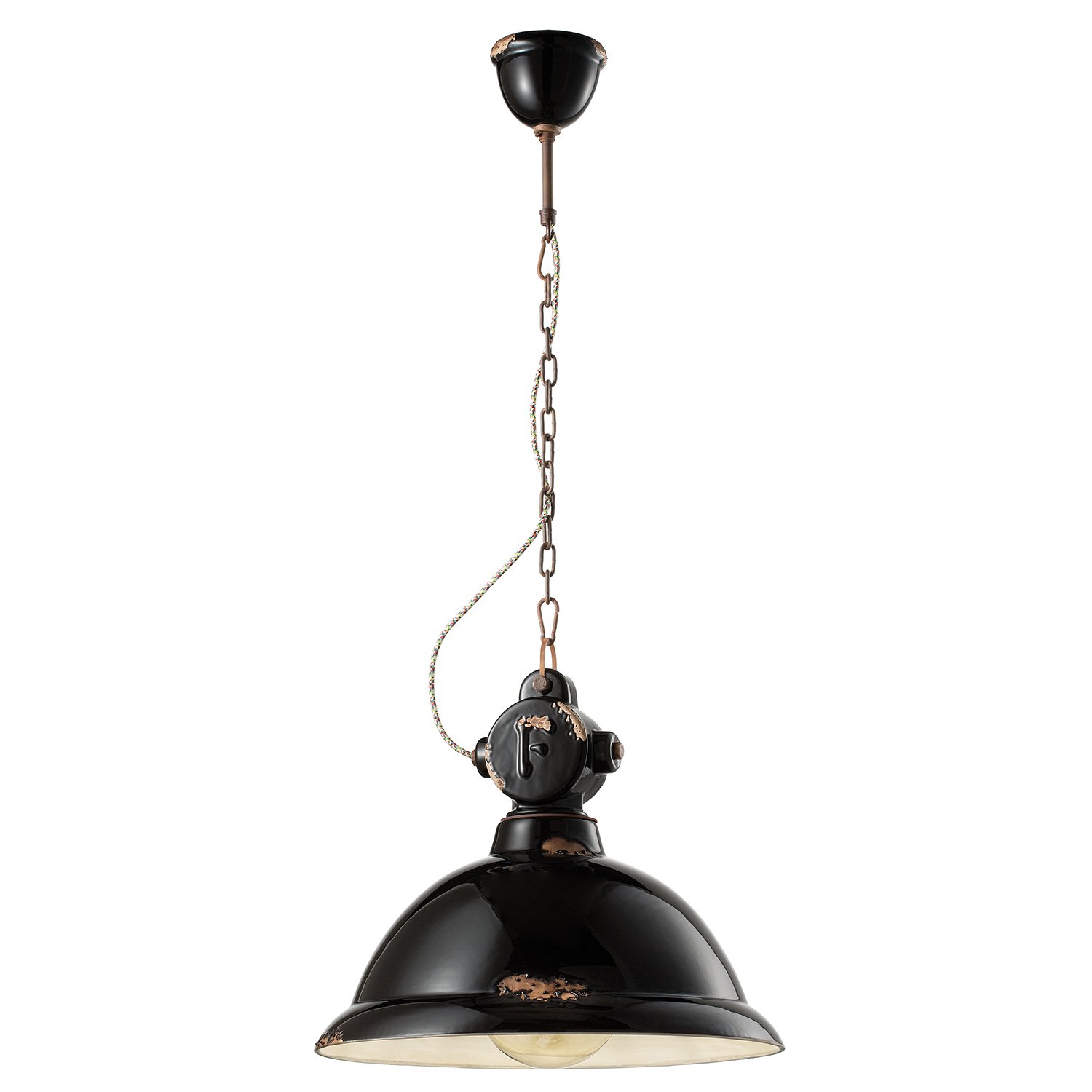 Lampadario Vintage Industrial Ferro E Ceramica Nero 1 Luce E27