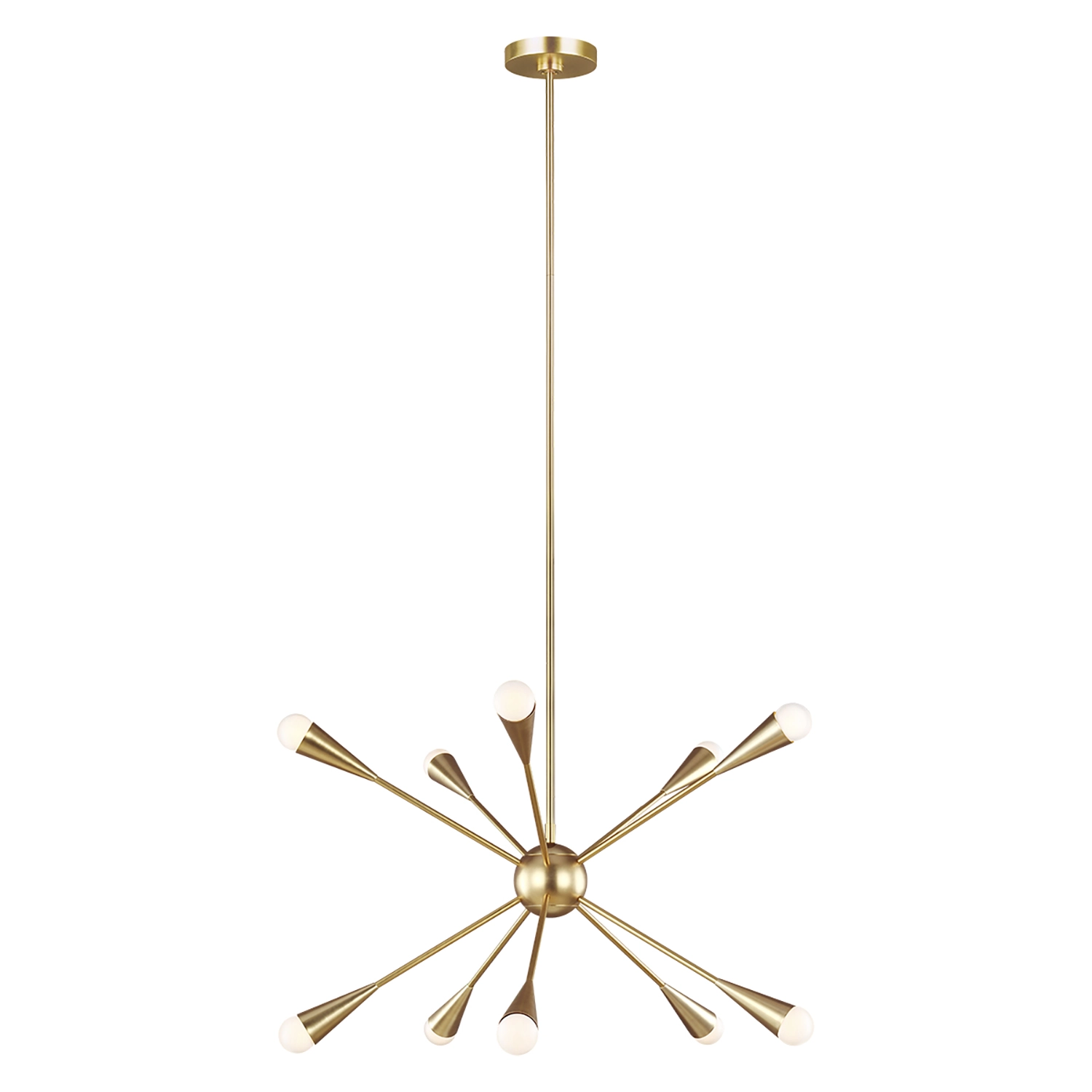 Lampadario a 10 luci - Ottone brunito. Jax trasmette il fascino celestiale della silhouette di un'esplosione di stelle, celebrando il suo status di icona del design classico dell'Art Déco. Tre opzioni di finitura, tra cui ottone brunito, nichel lucido e una splendida combinazione bicolore nero notte/ottone brunito, rendono l'immagine moderna e rinfrescante.