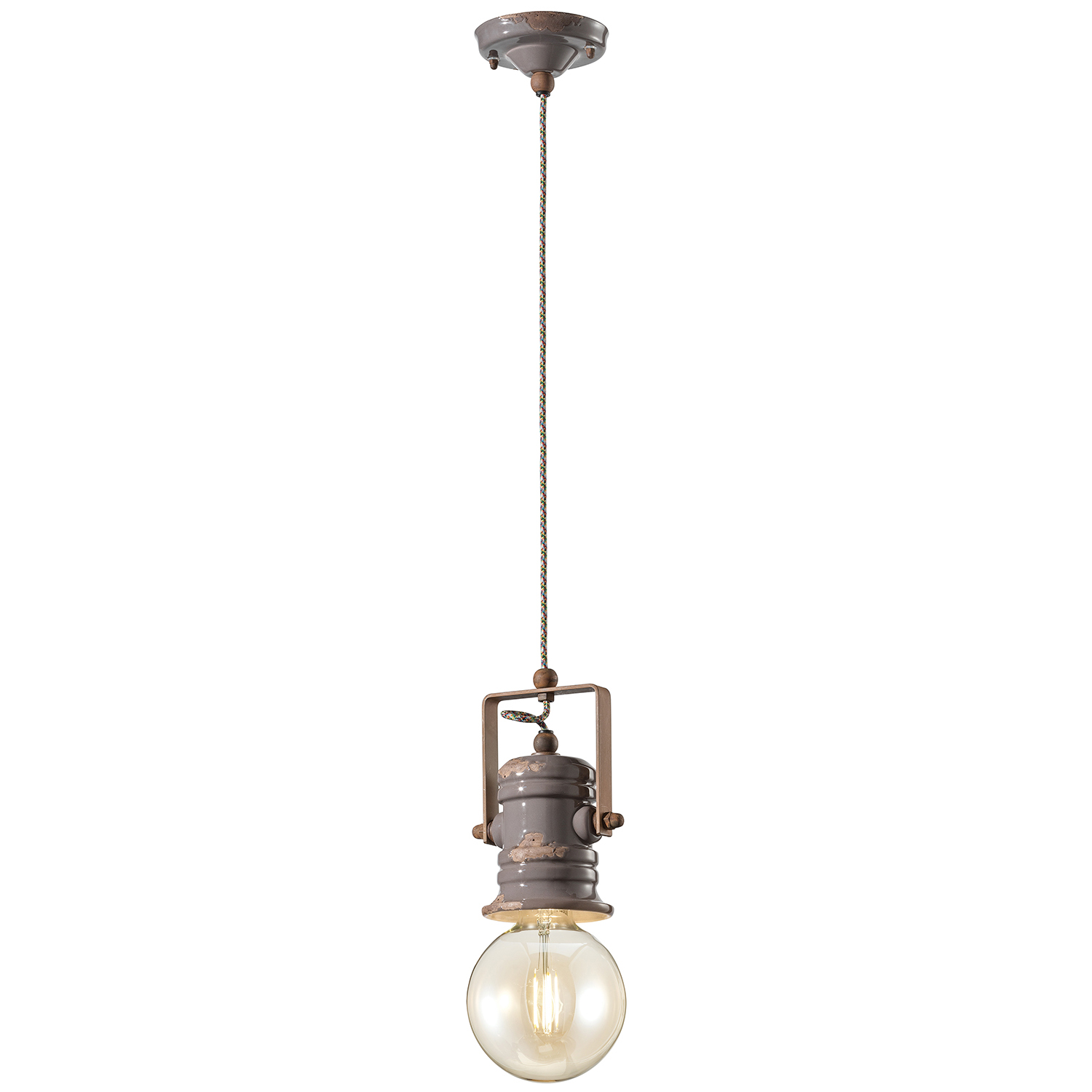 Collezione URBANL'INNOVAZIONE DAL SAPORE NOSTALGICOSospensione 1 Luce diam.13 cm in ceramica con finitura vintage tortora lavorata a mano da artigiani specializzati...