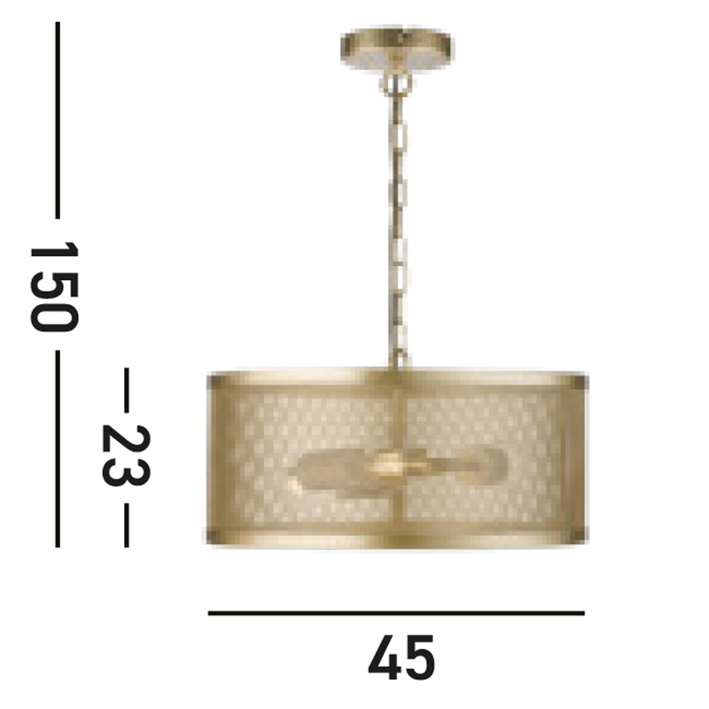 Collezione ReteSTILE NORDICOQuesto splendido ciondolo a rete in oro opaco incapsula 3 lampade all'interno di una bellissima gabbia decorata in maglia oro opaco. Il ..
