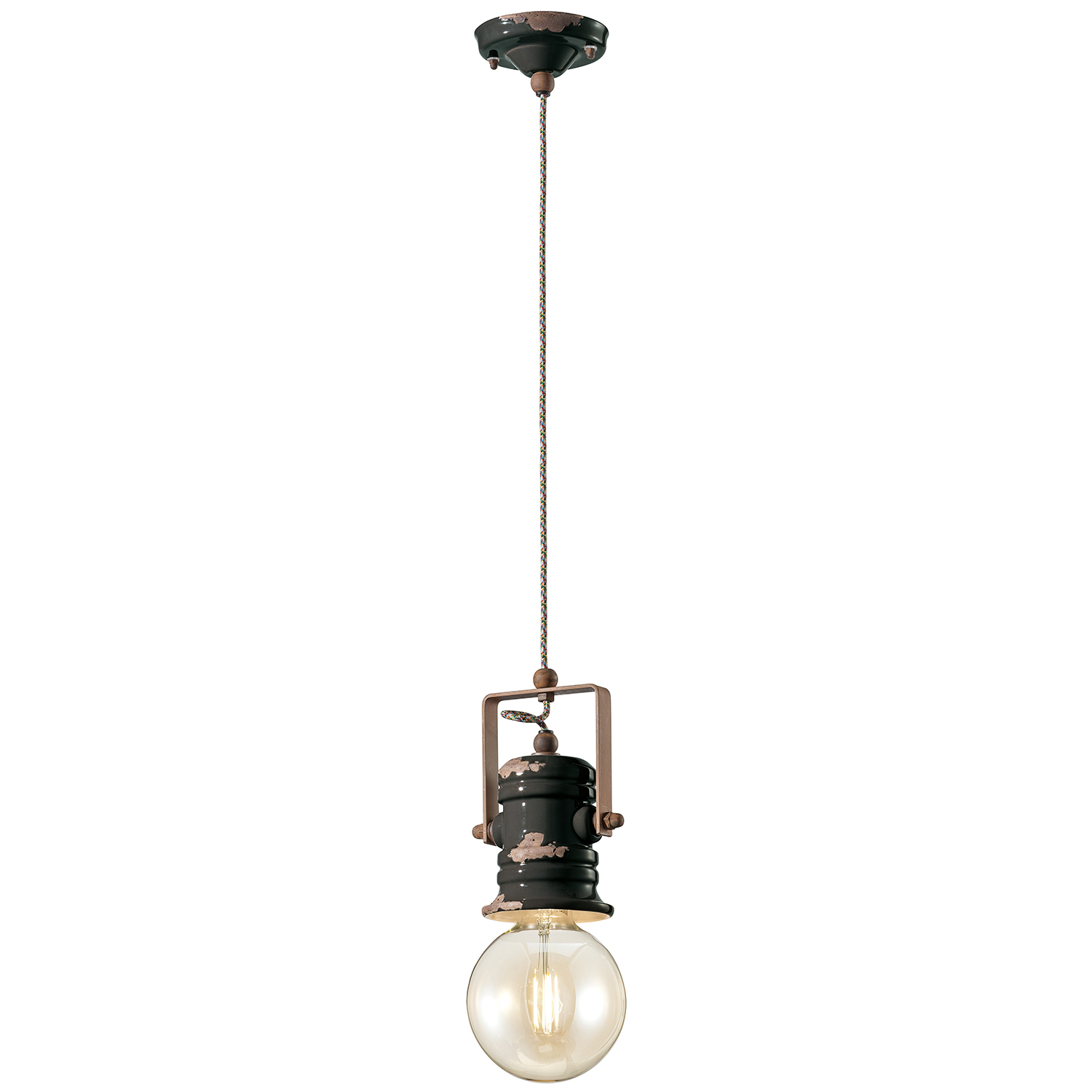 Collezione URBANL'INNOVAZIONE DAL SAPORE NOSTALGICOSospensione 1 Luce diam.12 cm in ceramica con finitura vintage nero lavorata a mano da artigiani specializzati.. U..