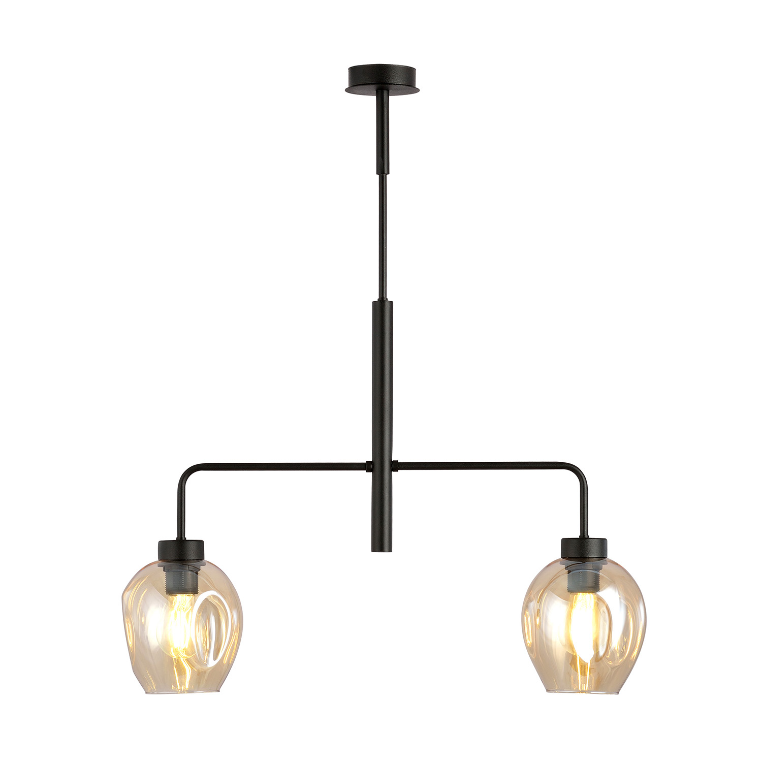 Lampadario Moderno 2 Luci Auriga In Accaio Nero E Vetro Ambra