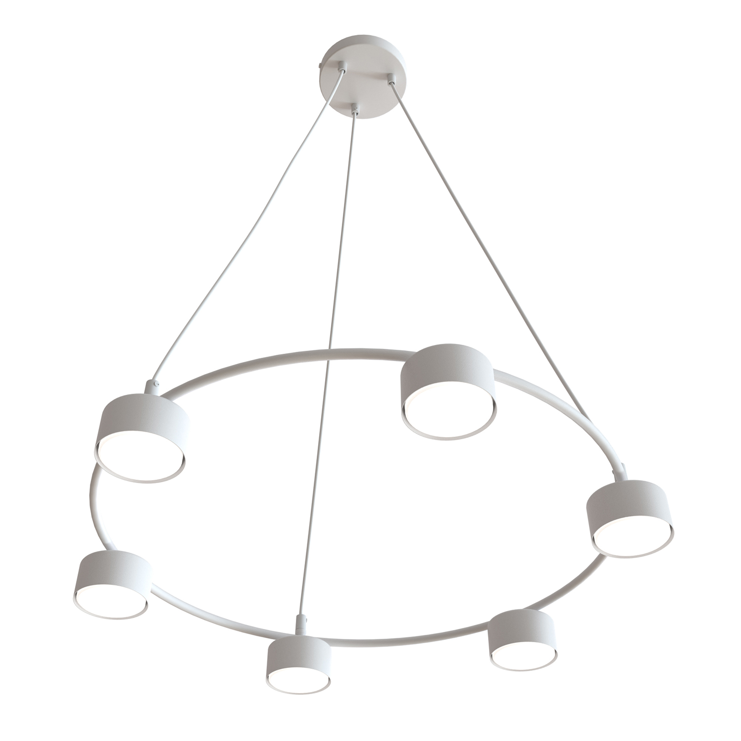 Collezione OdinFORME SEMPLICI, EMOZIONI PROFONDELampadario moderno a 6 luci con base rotonda in acciaio bianco e una struttura a forma di anello con sei diffusori ci..