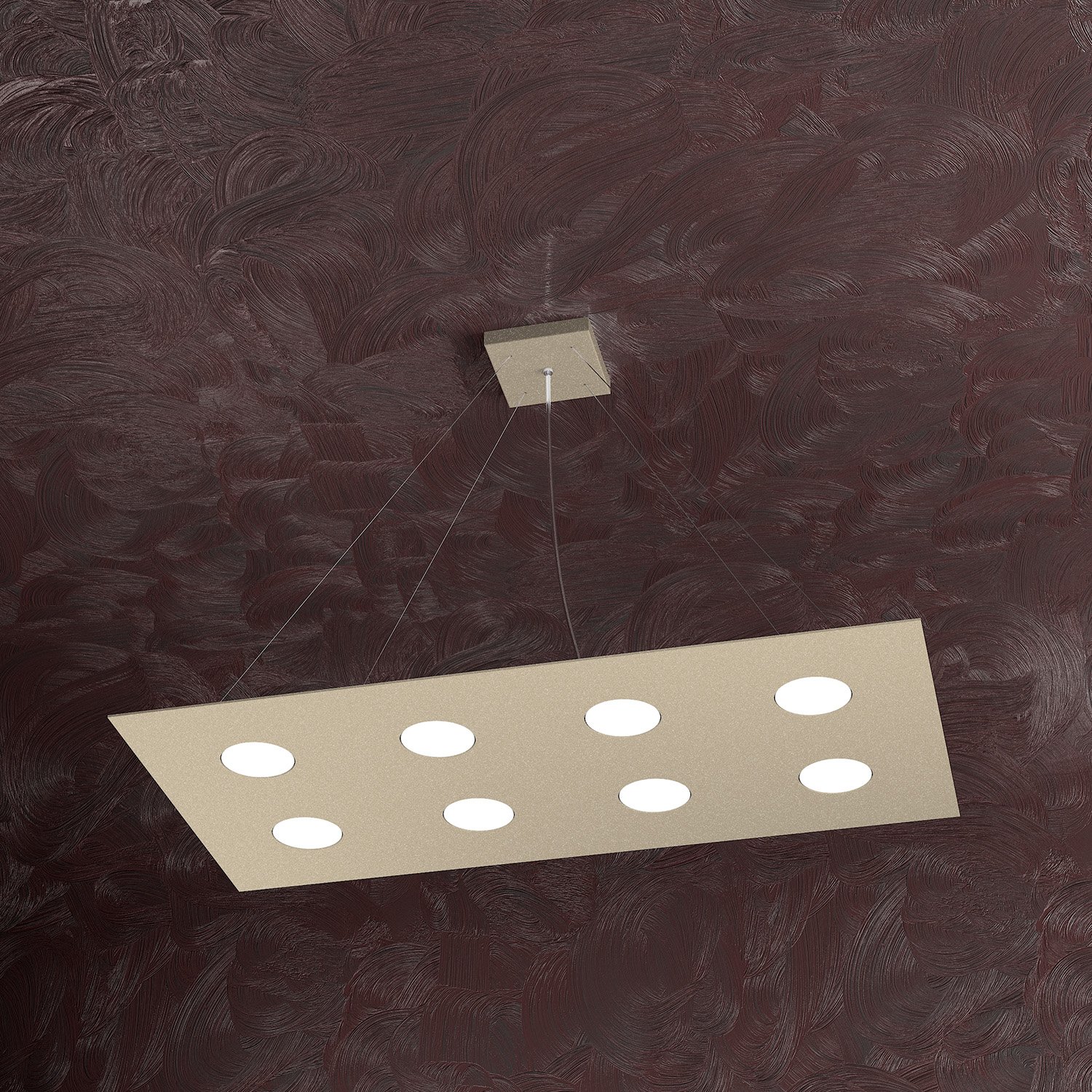 Sospensione 8 luci realizzata con lastre quadrate in metallo verniciato in finitura sabbia di forma rettangolare.. Il punto di forza del prodotto consiste nel non utilizzare dei led integrati ma una lampadina Gx53 che, una volta montata, arriva a filo della lastra metallica e può essere facilmente sostituita dall’esterno. Disponibile anche nella versione 8 luci più 3 luci.Questo articolo è disponibile in diverse finiture e/o dimensioni. E' possibile indicarlo nell'apposito campo NOTE presente in conclusione di ordine oppure contattarci dopo aver effettuato l'ordine.