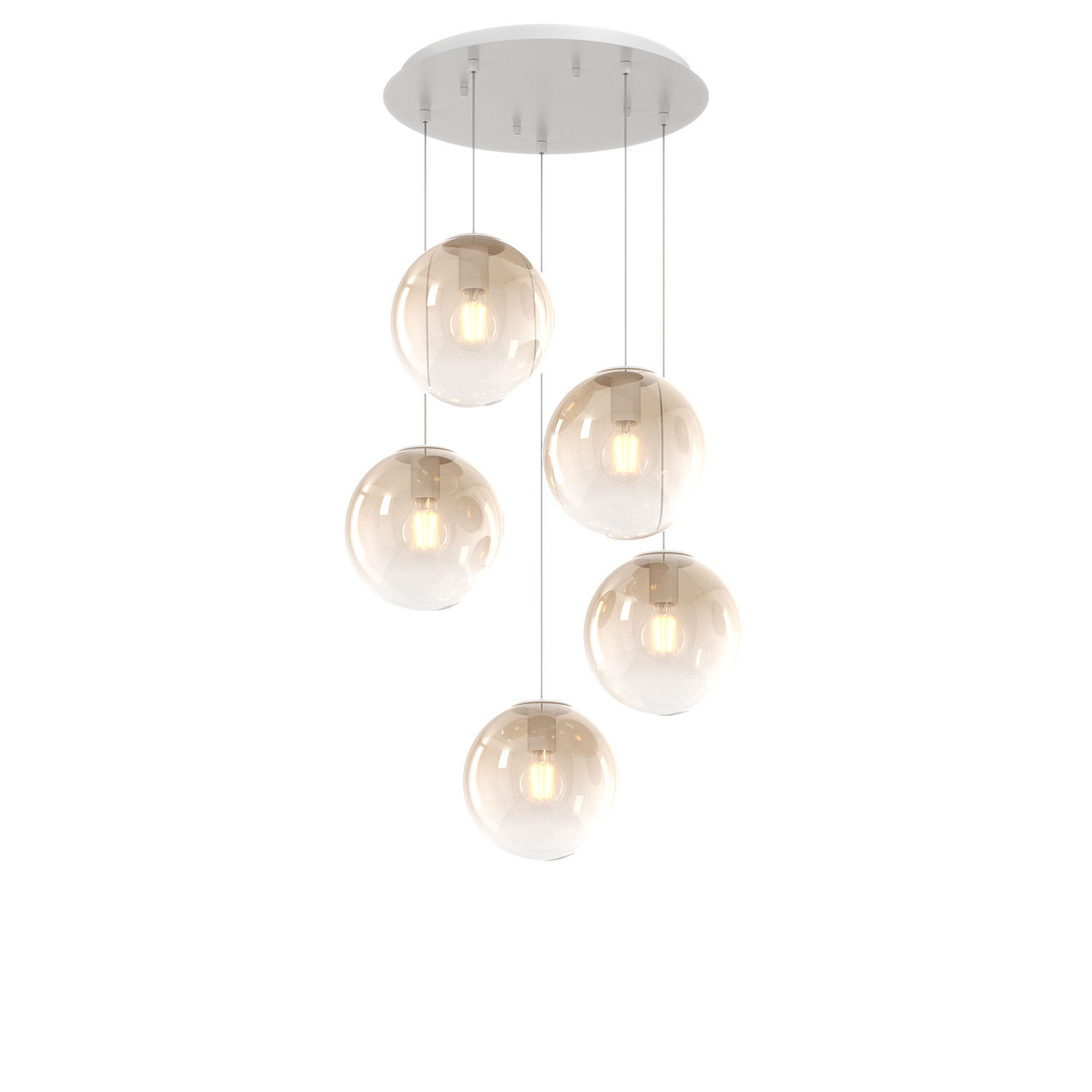 Lampadario Moderno Big Eclipse Metallo Bianco Vetro Ambra 5 Luci E27
