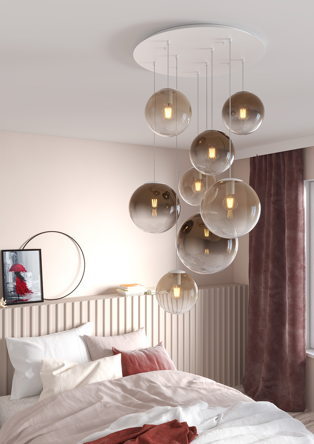 Collezione BIG ECLIPSECOMPONI LA TUA LUCECollezione di lampade a sospensione composta da una o più sfere in vetro pirex soffiato regolabili in altezza e disponibili ..
