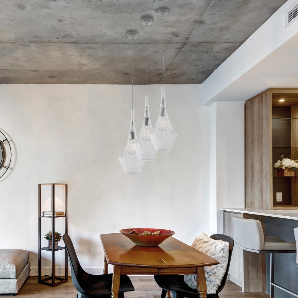 Lampadario Moderno Zeus Metallo Bianco Vetro Trasparente 3 Luci E27