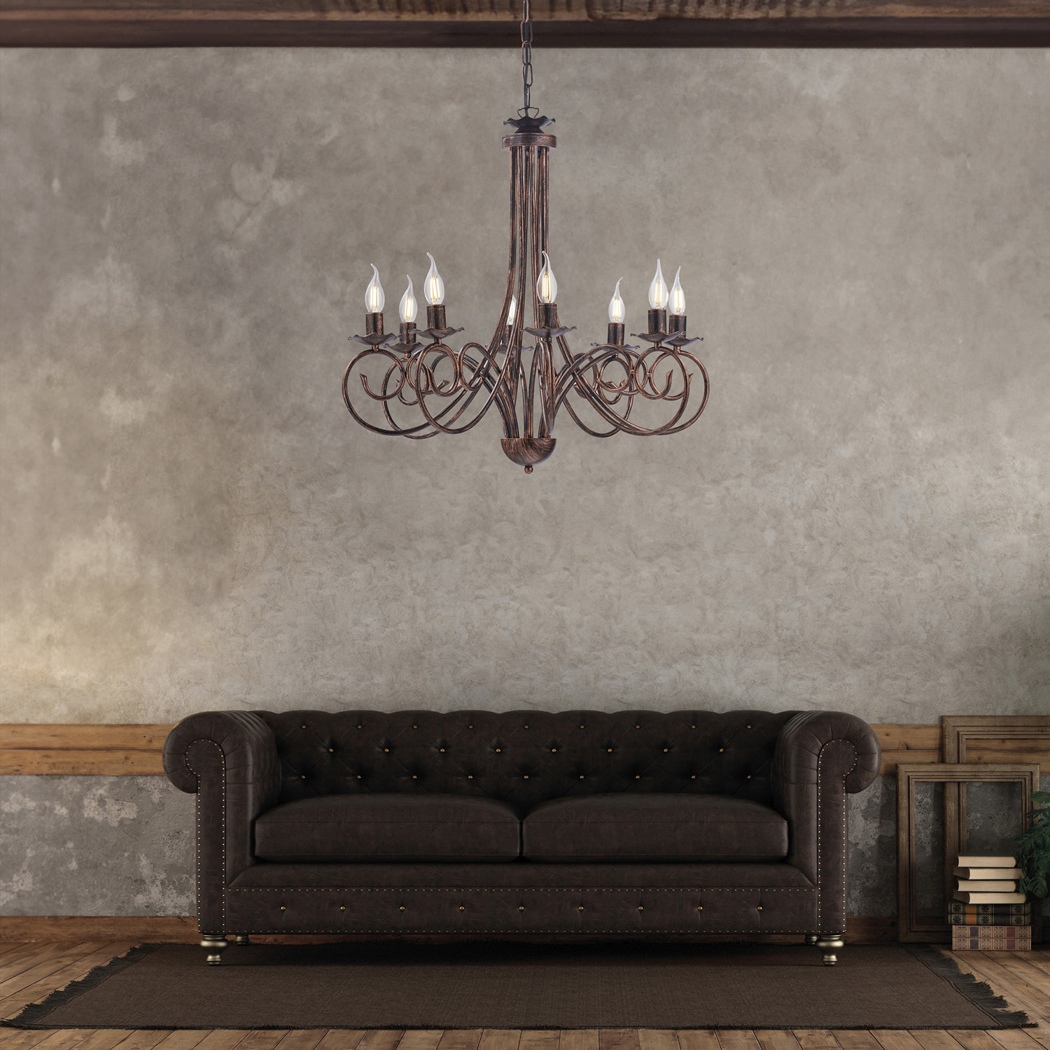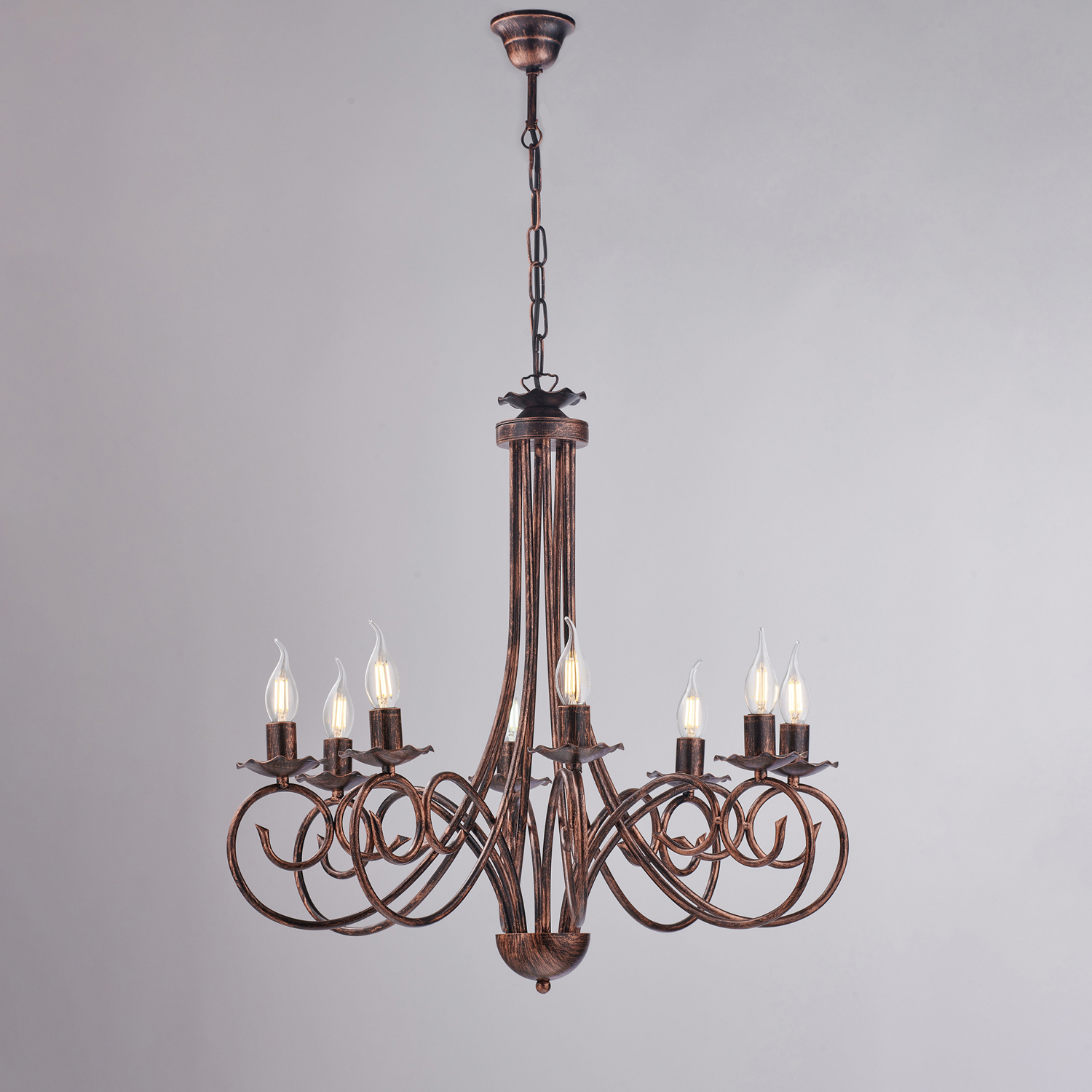 Lampadario Provenzale Candelabro Alma 8 Luci Ferro Battuto Nero E Rame