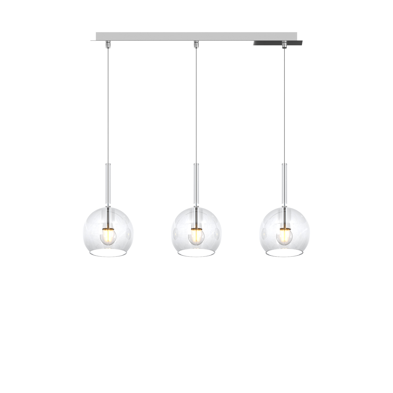 Sospensione Contemp. Rett. Future Metallo Cromo Vetro Trasparente 3 Luci E27