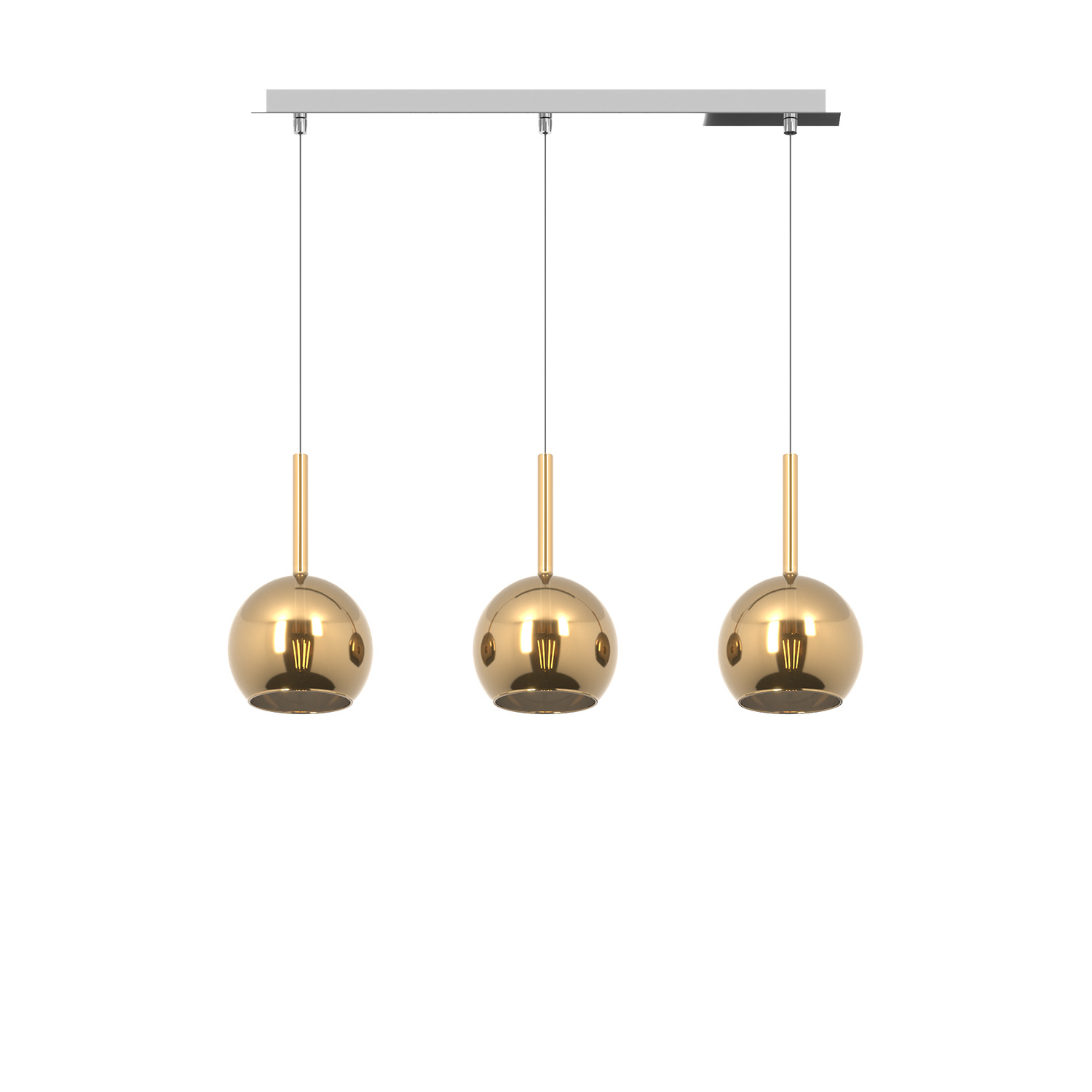 Sospensione 3 luci dal rosone rettangolare con struttura in metallo finitura cromo e da 3 vetri di uguale dimensione colore oro.. Le finiture dei vetri cromo, rame, oro e ambra sono trattamenti superficiali che riducono solo parzialmente l'emissione luminosa. La finitura trasparente può essere naturalmente abbinata alle altre. Le strutture in metallo sono disponibili nelle finiture cromo, bianco e ottone satinato, con il diffusore in vetro disponibile in tutte le finiture esistenti.Possibilità di creare una composizione componibile in base ai componenti della sospensione scelti.Questo articolo è disponibile in diverse finiture e/o dimensioni. E' possibile indicarlo nell'apposito campo NOTE presente in conclusione di ordine oppure contattarci dopo aver effettuato l'ordine.