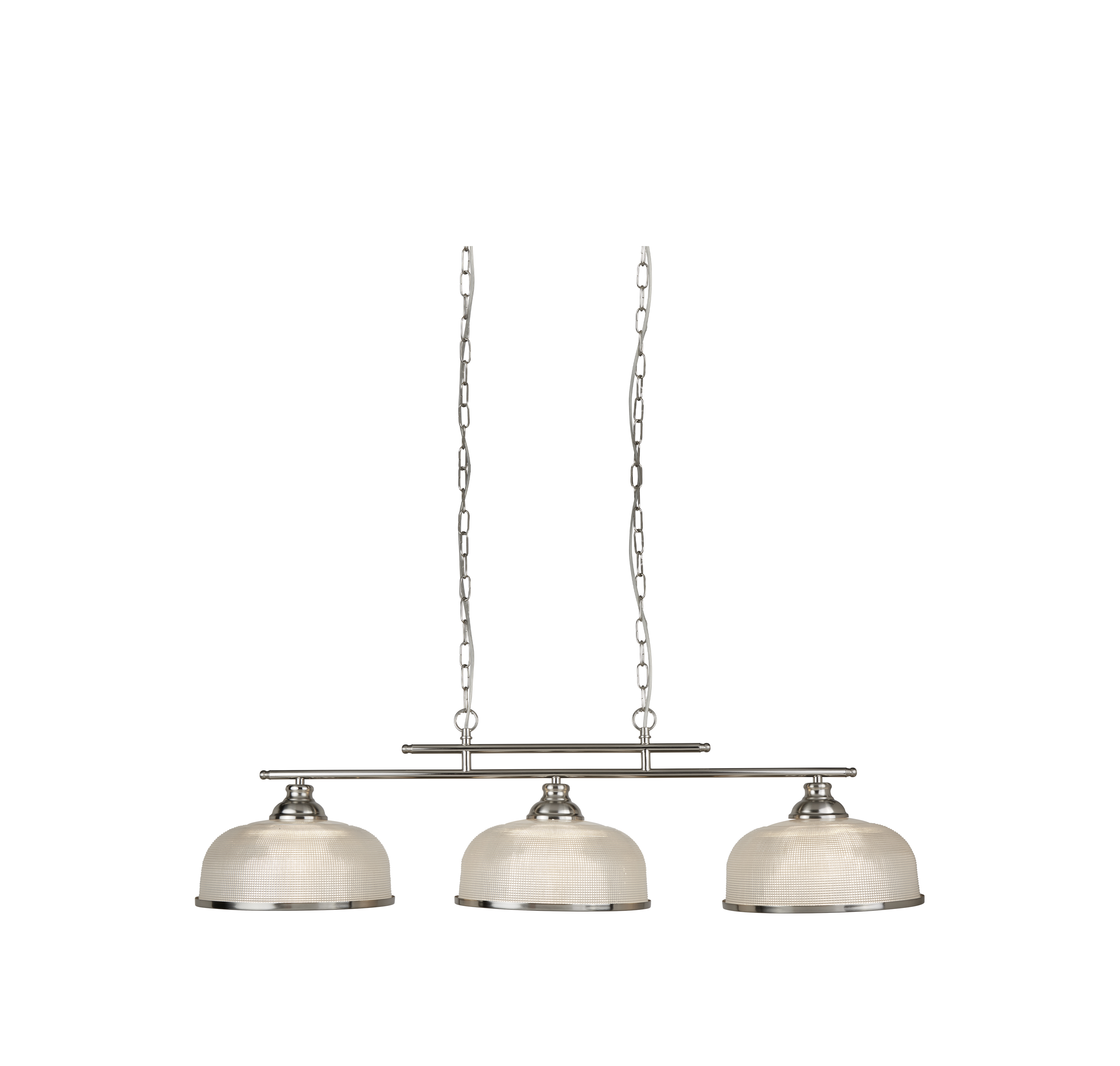 Sospesa da una solida barra a soffitto divisa, la sospensione a barra divisa Bistro II è un modo semplice per aggiornare la cucina o la sala da pranzo. Dalla collezione bistrot, la sospensione a barra luminosa Bistro II trasuda raffinatezza ed è perfetta per un classico ambiente da pranzo in cucina. Il vetro in stile olofano a coste è completato da un rivestimento in argento satinato, fondendo stili moderni e più tradizionali. Regolabile in altezza, questa lampada a sospensione con barra divisa può essere appesa in basso sopra un'isola della cucina o un tavolo da pranzo per creare un'atmosfera calda.