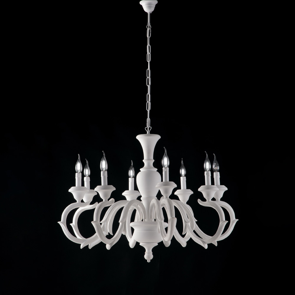 Lampadario Shabby Chic Fiorenza Legno Bianco 8 Luci E14
