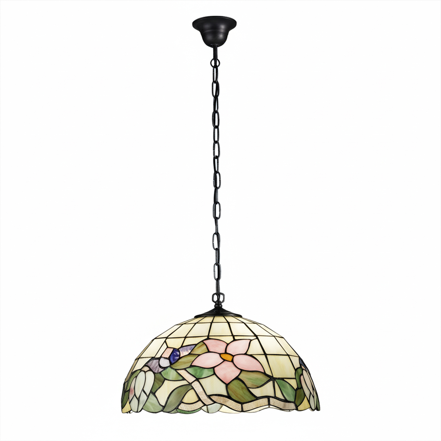 Paralume Tiffany In Vetro Decorato Multicolor D. 45Cm Per Sospensione
