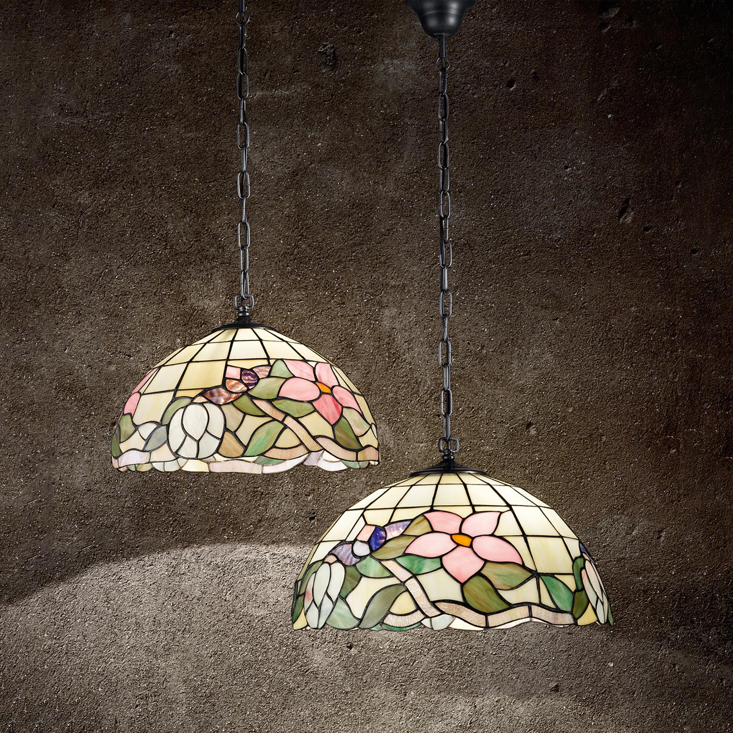 Lampadario Tiffany Vetro Multicolor 2 Luci E27 Piccolo