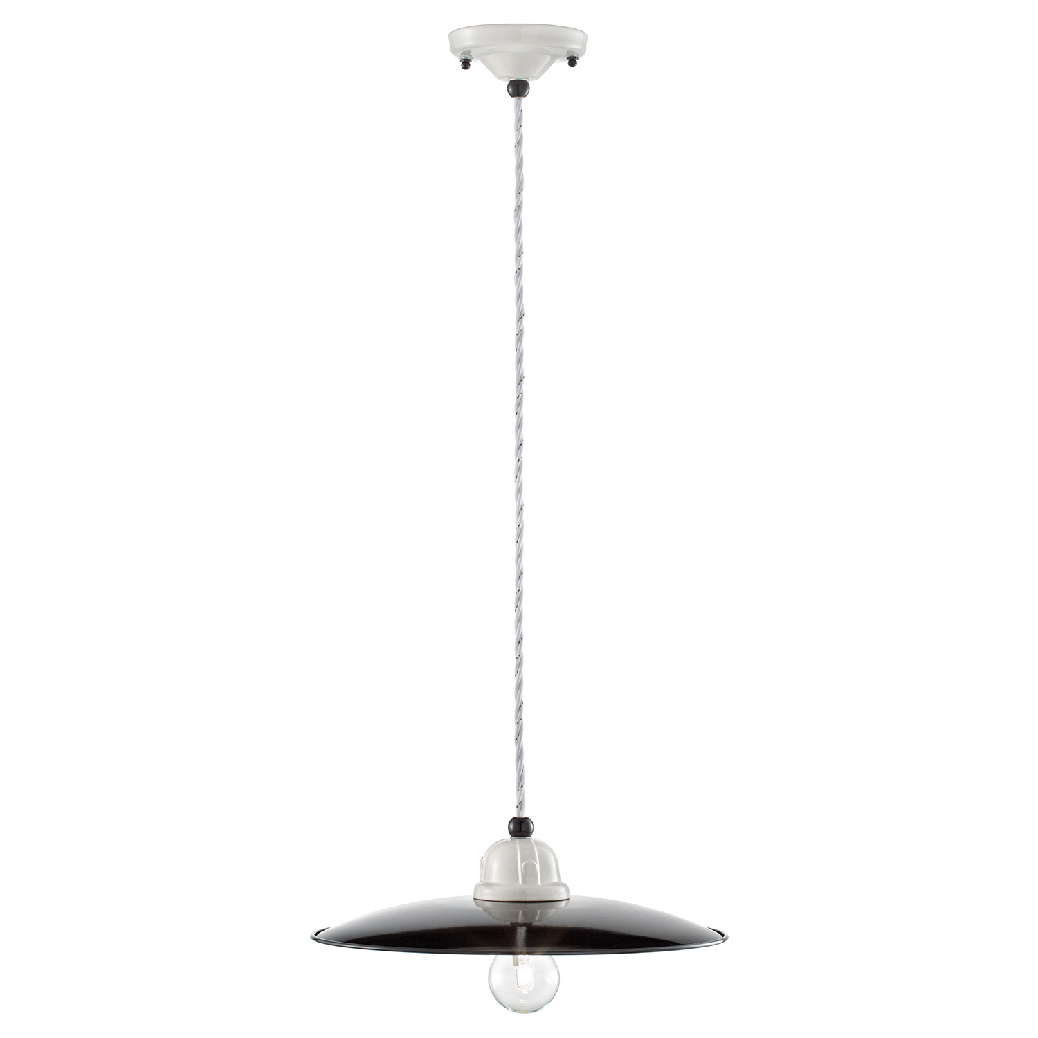 Sospensione 1 Luce diam.30 cm in ceramica con finitura smalto nero e bianco a mano da artigiani specializzati.. Colori netti e superfici lucide per un profilo dalla presenza attuale pur conservando la memoria di uno stile passato. Le viti di supporto diventano un dettaglio prezioso. Questa lampada può essere collocata in ambienti dallo stile diverso come ad esempio una sala da pranzo, un ingresso o anche un ufficio o un bar ispirati ad uno stile Industrial. Questo articolo è realizzato interamente a mano ed è disponibile anche in altre finiture, come da foto campione. Per richiedere una composizione diversa è possibile indicarlo nell'apposito campo NOTE presente in conclusione di ordine indicando il codice della finitura oppure contattarci dopo aver effettuato l'ordine. Essendo un prodotto 100% artigianale, stai acquistando un prodotto unico e per tanto può differire leggermente dalla foto.