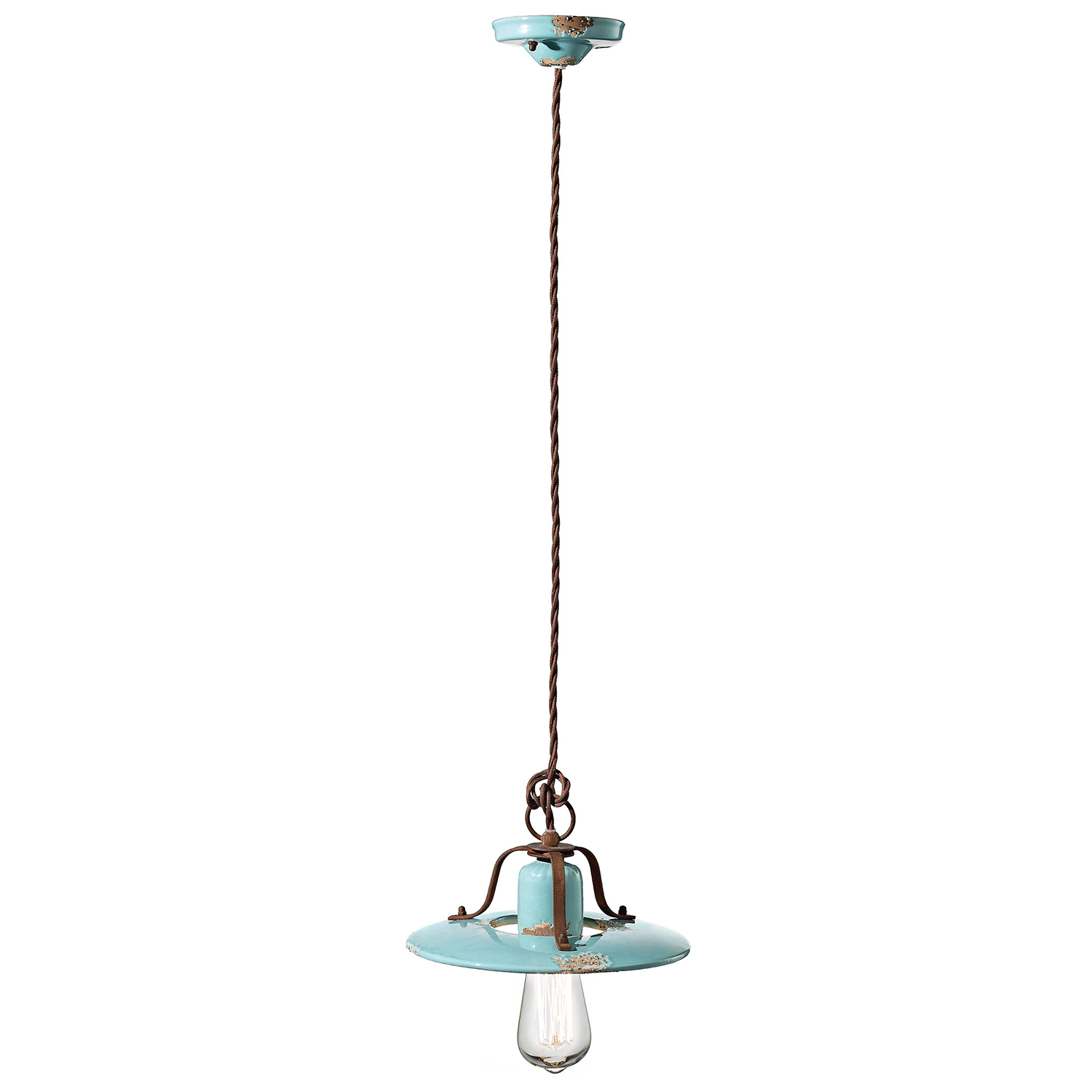 Collezione COUNTRYL'ARMONIA TRA IL VISSUTO ED IL NUOVOSospensione 1 Luce diam.30 cm in ceramica con finitura vintage azzurro scrupolosamente lavorata a mano da artig..