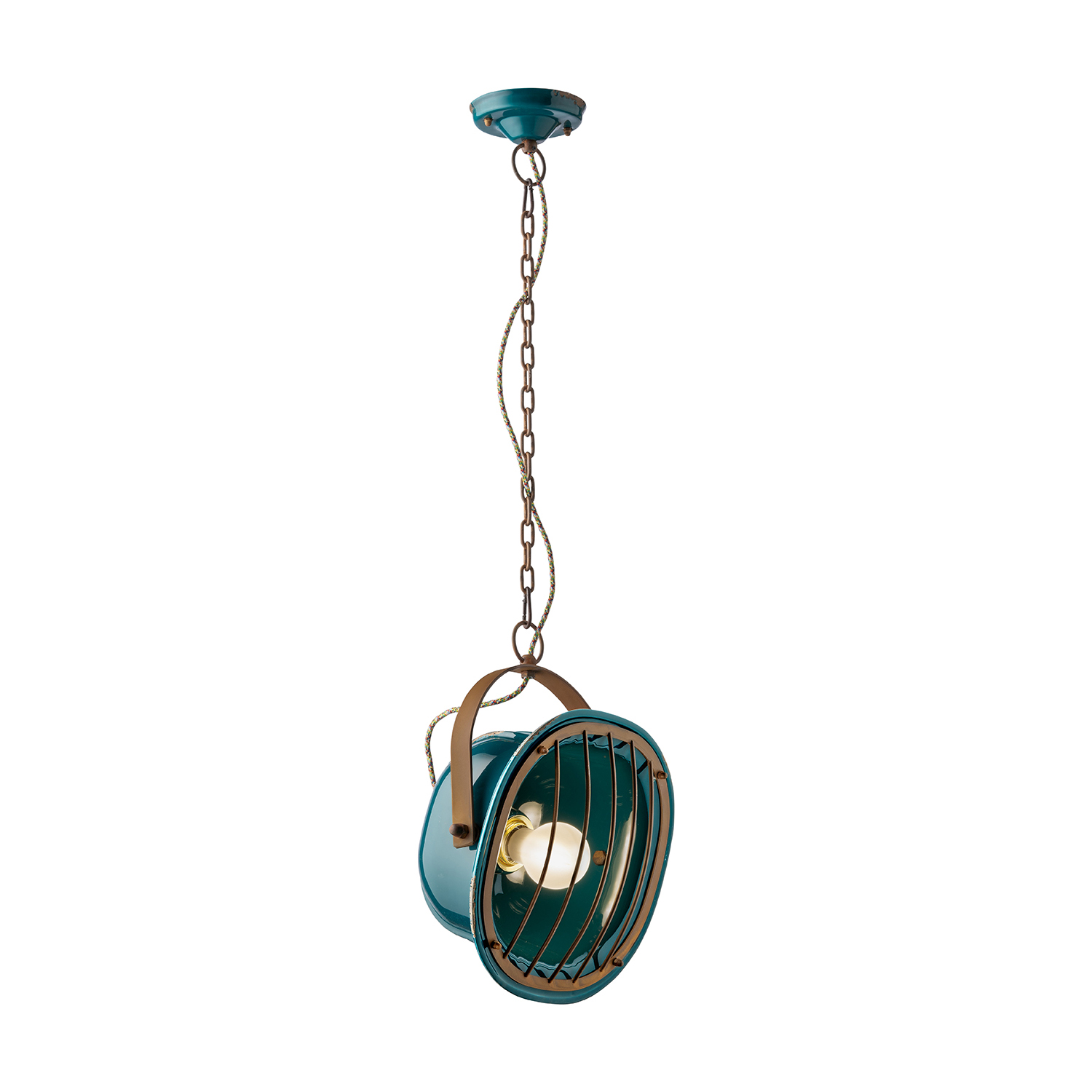 Collezione INDUSTRIALIL PASSATO IN CHIAVE RIVISITATASospensione 1 Luce diam.52 cm in ceramica con finitura vintage azzurro scrupolosamente lavorata a mano da artigia..