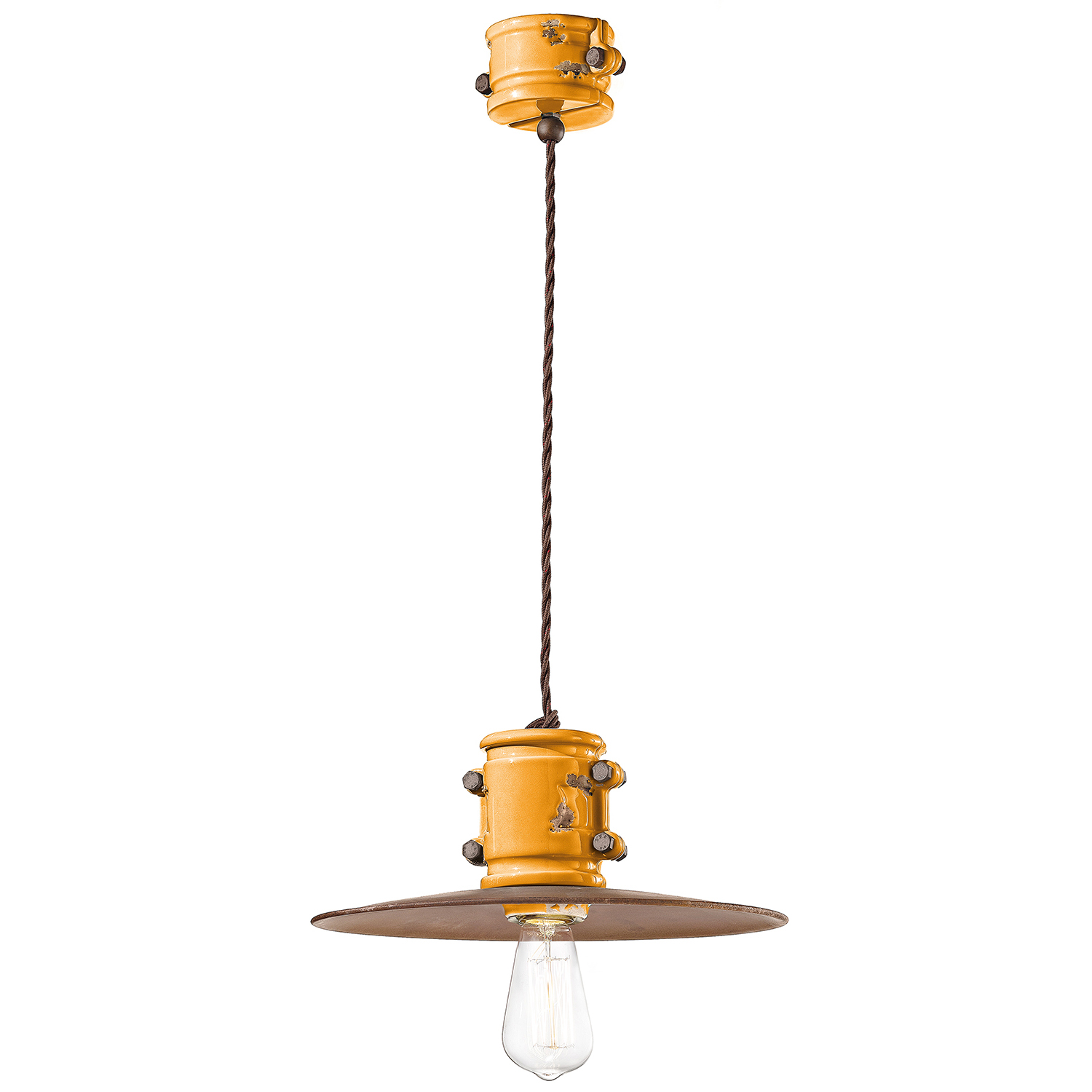 Collezione URBANL'INNOVAZIONE DAL SAPORE NOSTALGICOSospensione 1 Luce diam.13 cm in ceramica con finitura vintage giallo lavorata a mano da artigiani specializzati....