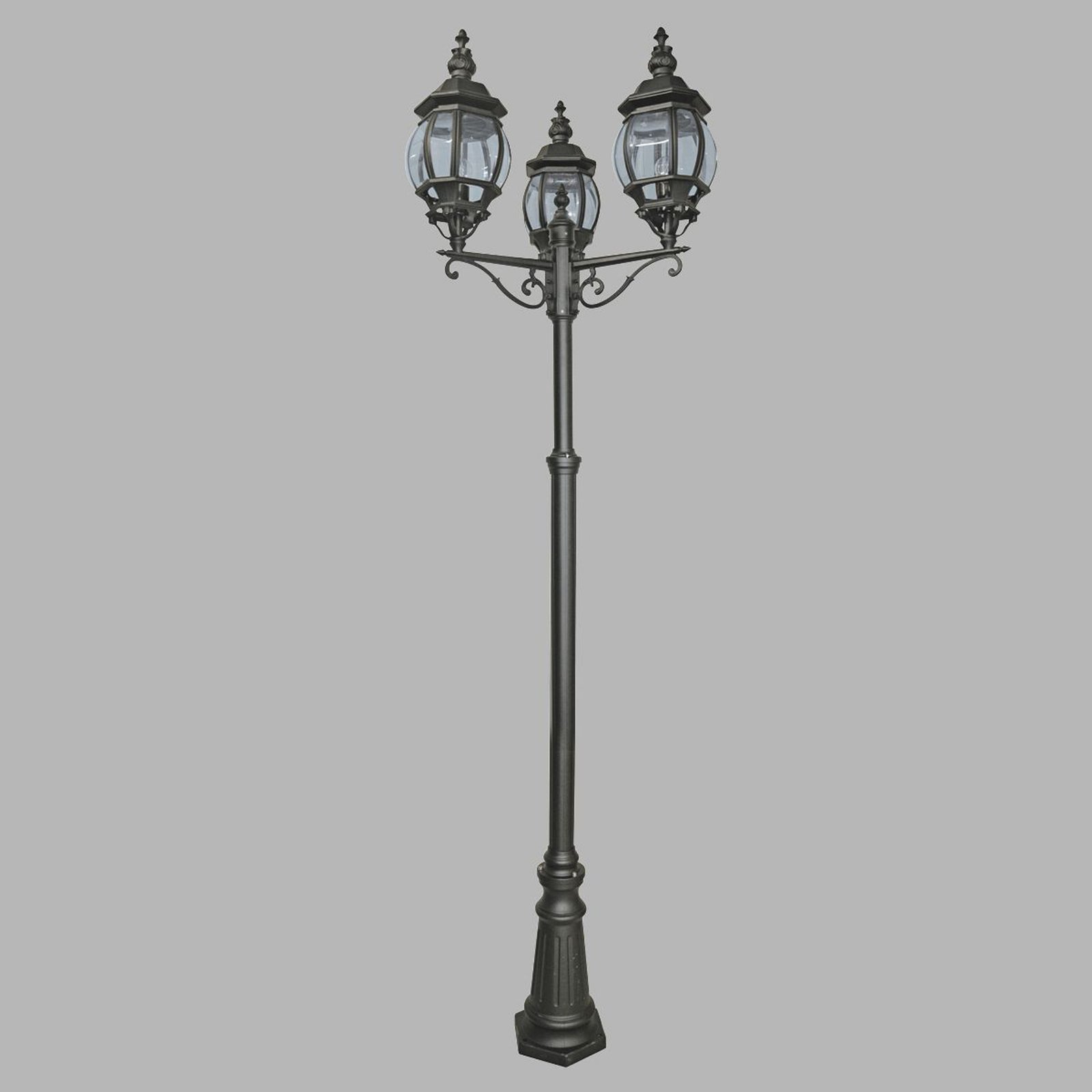 Collezione Bel AireIL TOCCO DI CLASSE CHE ILLUMINA LA NOTTEQuesto lampione da esterno a 3 luci Bel Aire con vetro trasparente farà sembrare la tua casa una residenza..