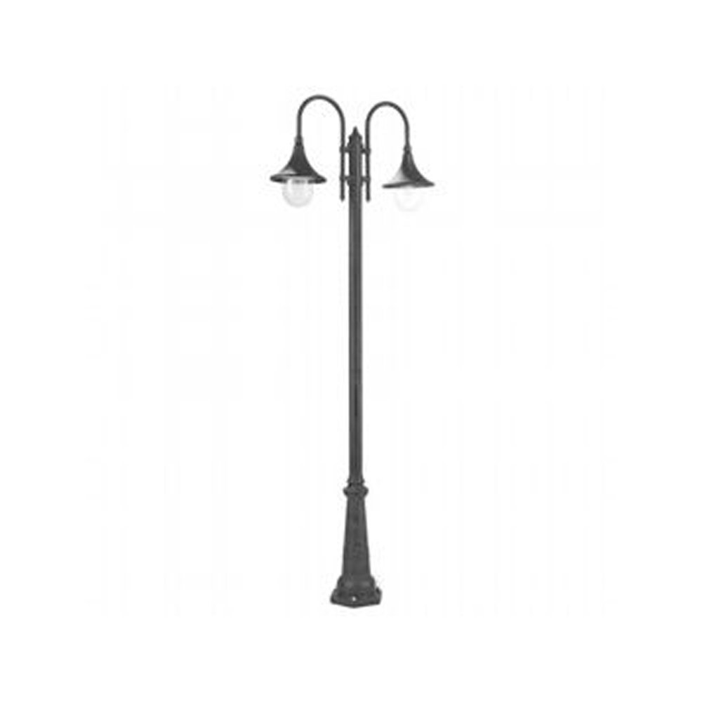 Lampione Esterno H230Cm Lampara Alluminio E Termoplastica Nero 2 Luci E27