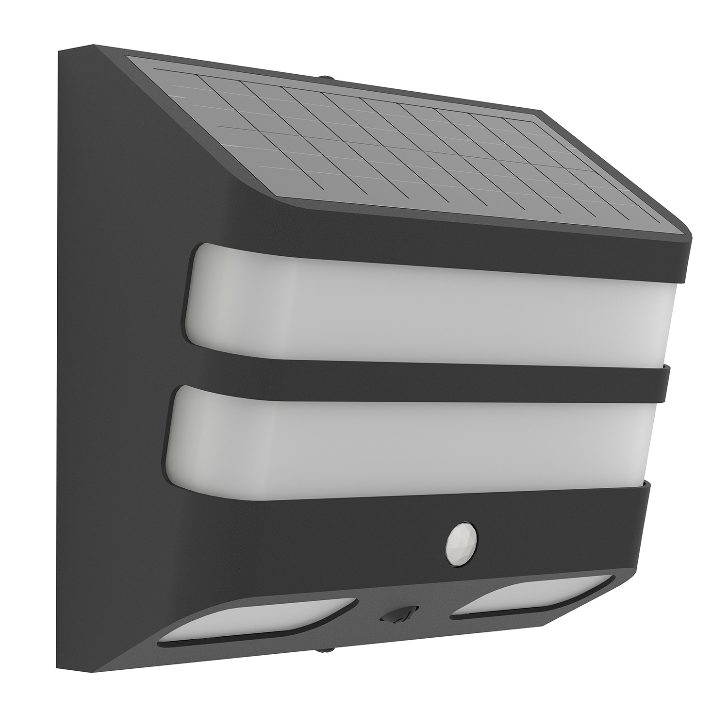 L’applique solare per esterni STIAPPA è realizzata in policarbonato nero e bianco. Ha una doppia sorgente luminosa alimentata da una batteria di 1800mAh. Il led ha 6,5W erogando una luce fredda di 4000K e 800LM. La protezione anti-spruzzo (IP44) ne consente l'uso negli spazi esterni.