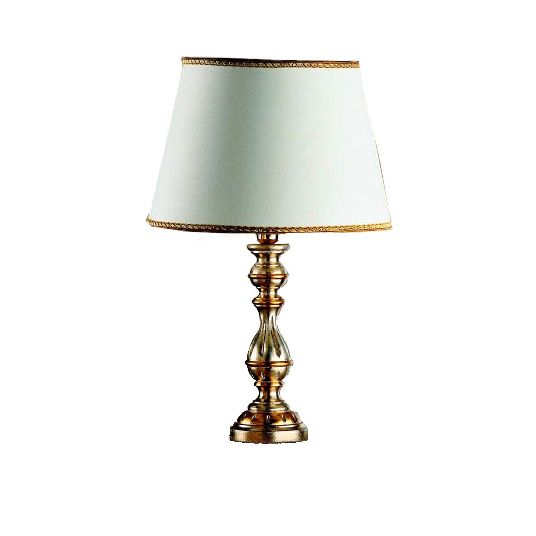 Lumetto In Legno Classico Oro Con Paralume 1 Luce Cicogna