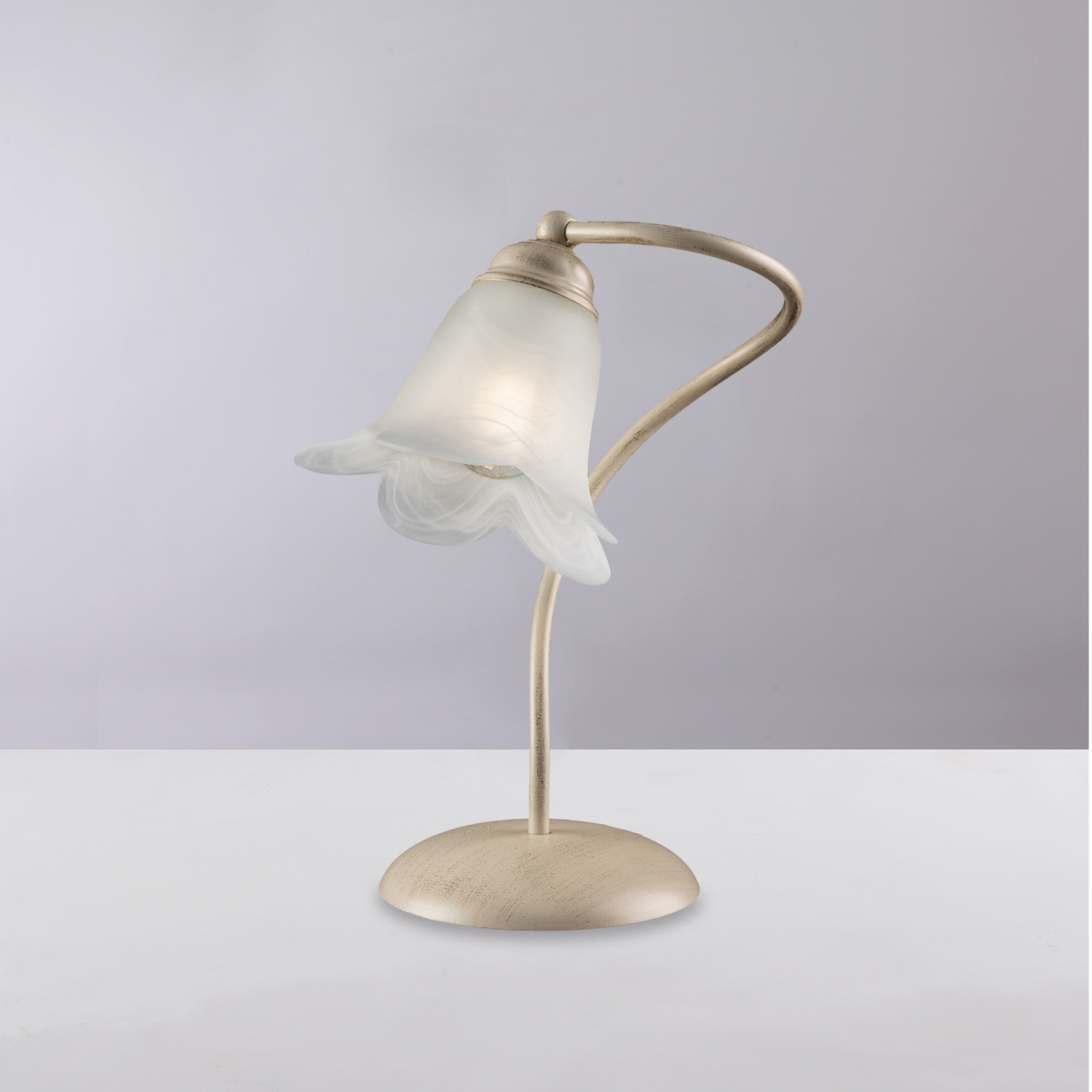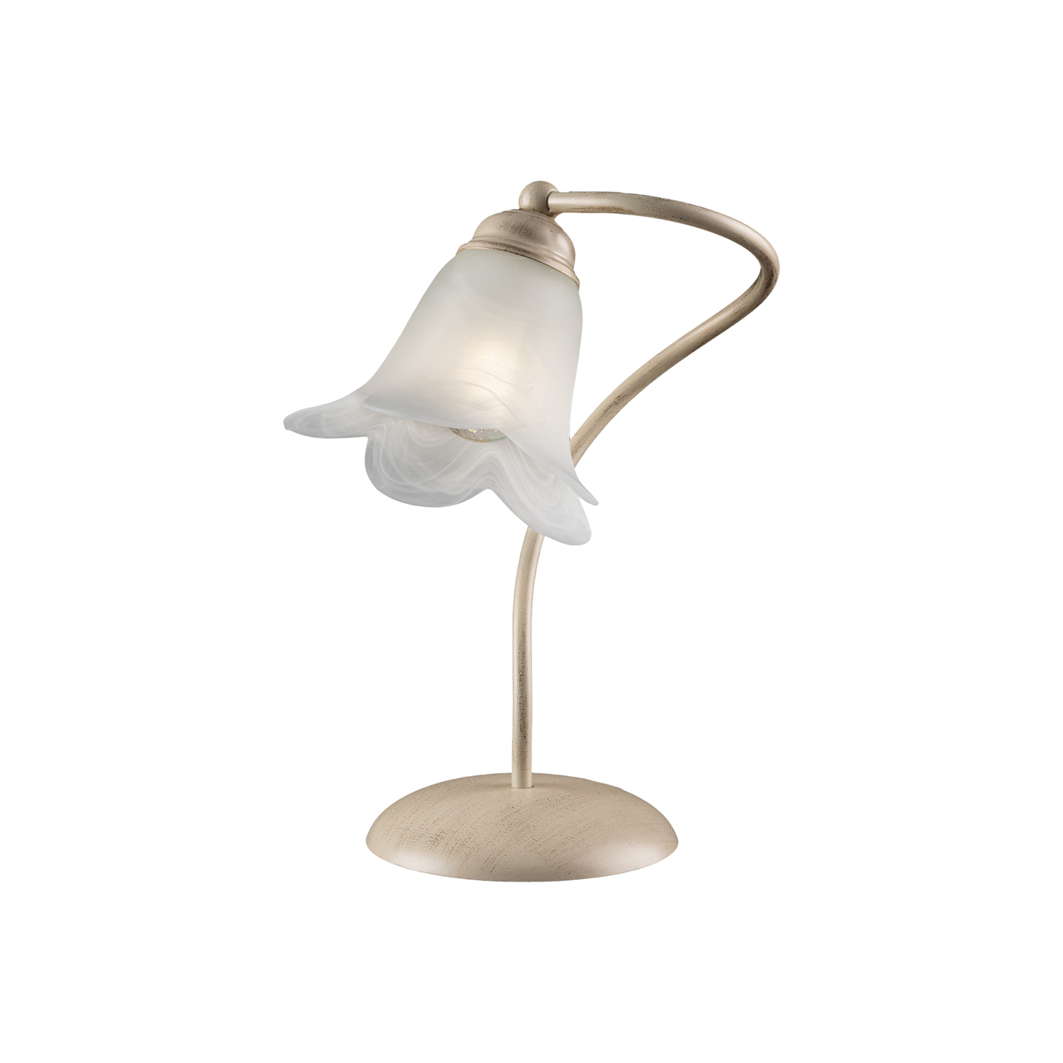 Collezione AliceLA DELICATEZZA DELL'ARTE POVERALumetto 1 luce in ferro battuto laccato con pittura termoindurente color avorio con decorazione oro. . Diffusore in ve..