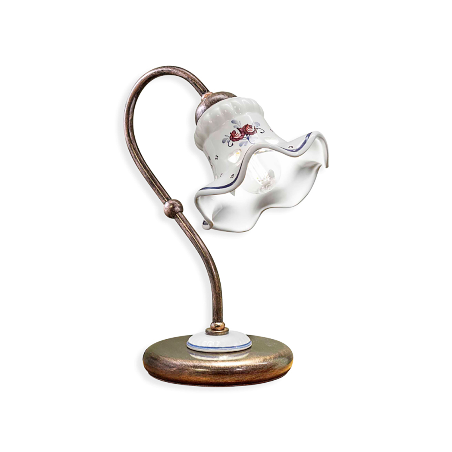 Lumetto 1 luce E14 diametro 15 cm in ceramica decoro filo BLU con montatura Nero Sfumato Rame frutto di una lavorazione eseguita rigorosamente a mano.. L'equilibrio tra materiali di alta qualità e artigianato meticoloso rende questo lumetto un pezzo unico che aggiunge un tocco di raffinatezza e stile a qualsiasi spazio. Perfetto per illuminare con classe salotti, sale da pranzo o ambienti commerciali, questo prodotto diventa il punto focale dell'arredamento, creando un'atmosfera accogliente e sofisticata. Lasciati sedurre dalla sua bellezza senza tempo e regala al tuo ambiente un'illuminazione di classe. I decori si possono scegliere in base ai propri gusti e/o esigenze. E' disponibile anche nei colori Argento, Bianco, Bianco Sfumato Argento, Bianco Sfumato Oro, Nero, Nero Sfumato Argento, Nero Sfumato Oro, Nero Sfumato Rame, Ruggine, Verde Sfumato Oro, Ottone Brunito, Ottone Satinato, Nickel Satinato, Cromo.