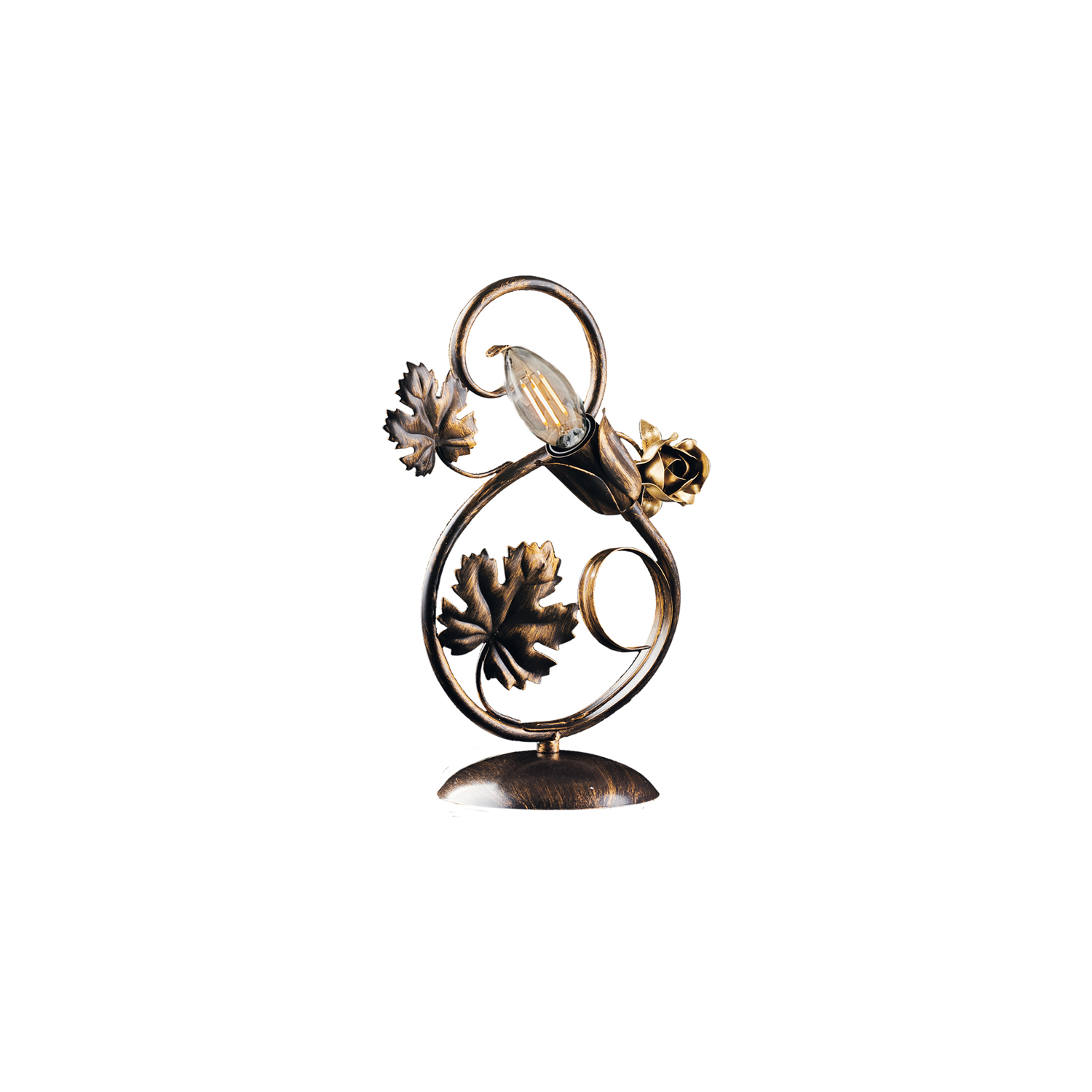 Collezione IrisATMOSFERA FLOREALE PER UN CLASSICO SEMPRE ATTUALELumetto 1 luce in ferro laccato marrone wengè con decorazione effetto antichizzato oro antico.. Compo..