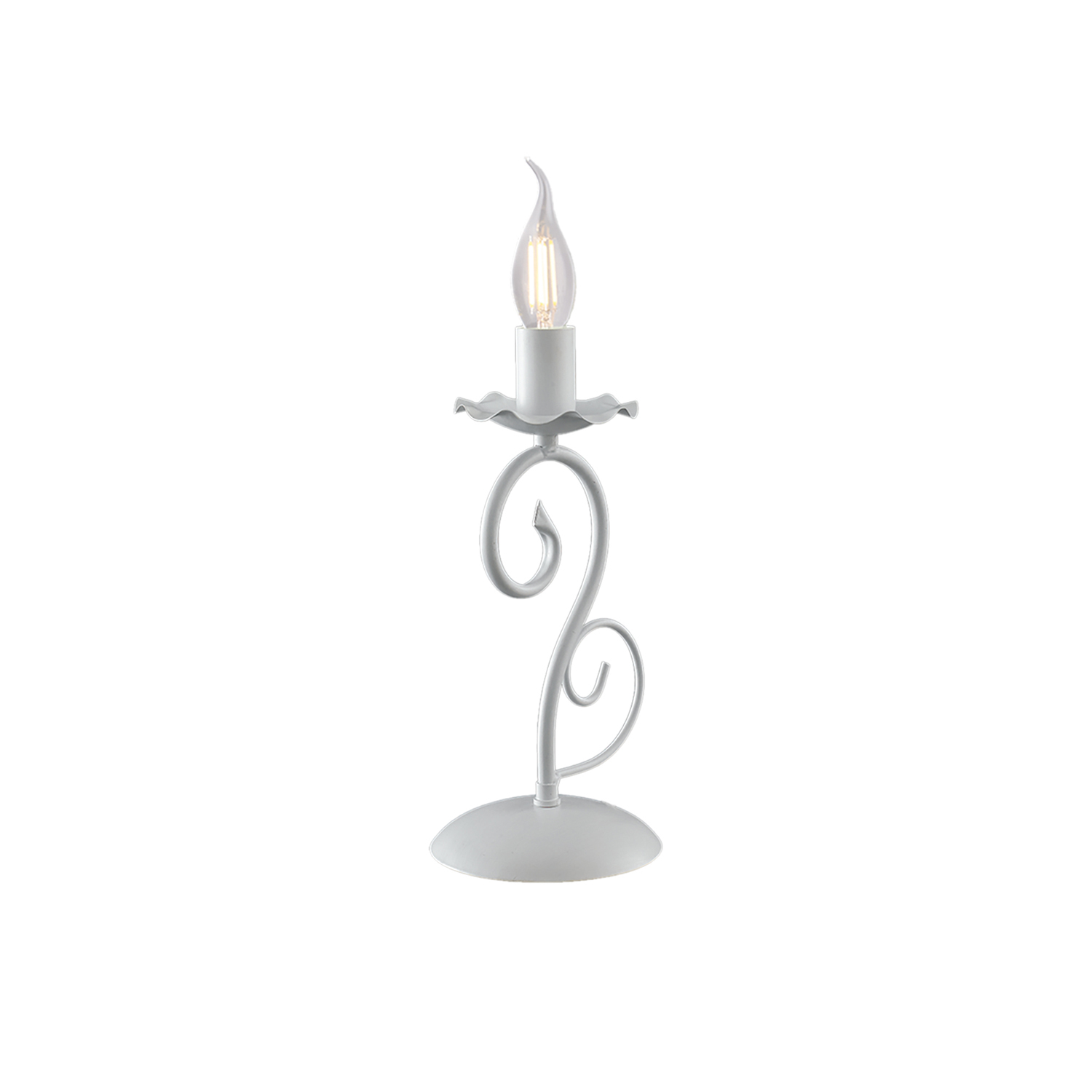 Lumetto in ferro battuto laccato bianco con decorazione effetto shabby chic a 1 Luce. . Lo stile provenzale country, lo rendono ideale per illuminare camere da letto in stile provenzale e shabby chic abbinato ai lampadari della stessa serie. La struttura del lumetto è realizzata in ferro sagomato con portalampada a vista effetto candela. Disponibile anche nella versione nero e rame. Realizzato interamente a mano da mastri artigiani, 100% Made in Italy.